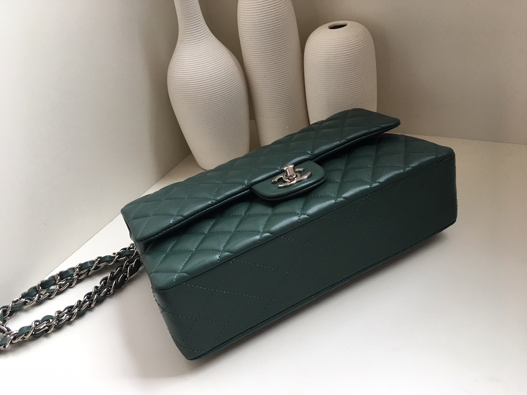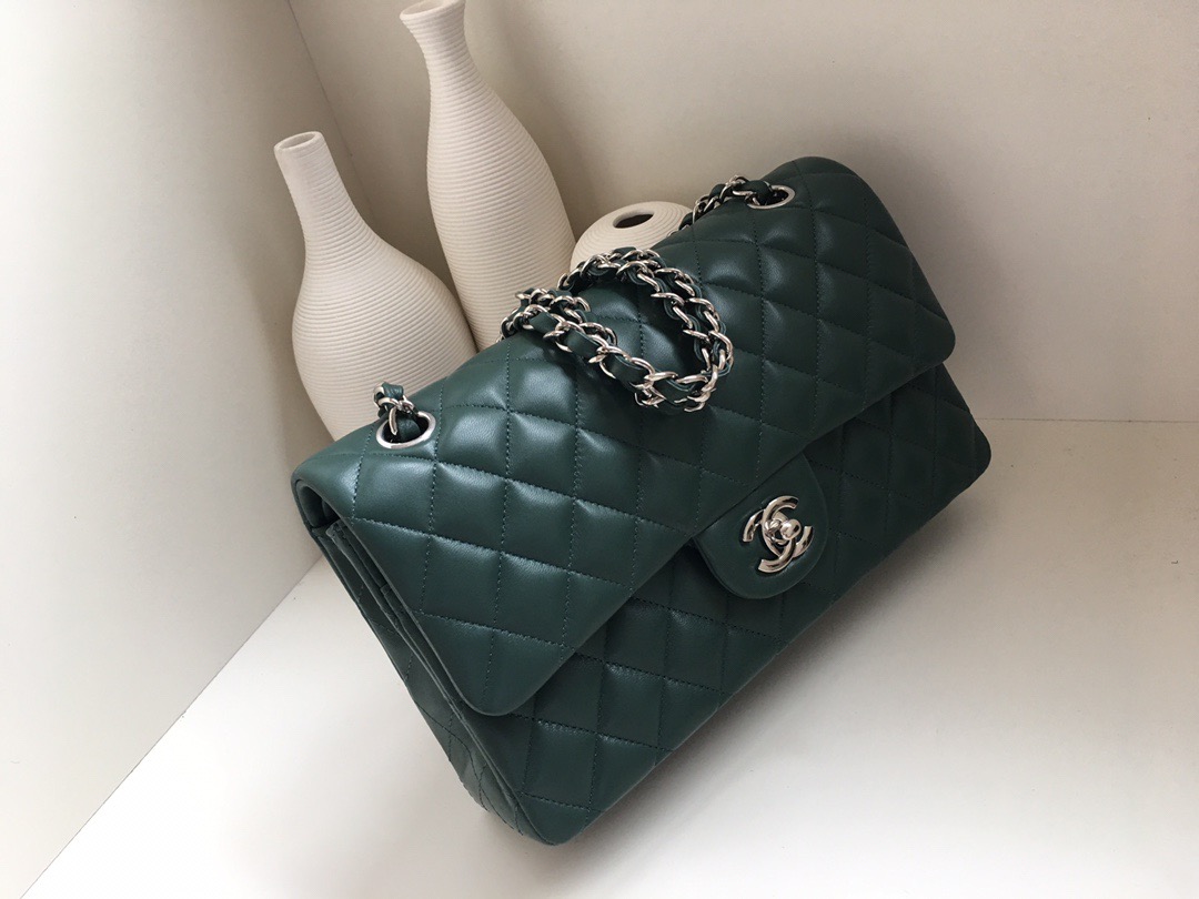 Chanel Flap Classic Lambskin. All copper hardware. Medium. Forest Green. Silver Buckle 25cm