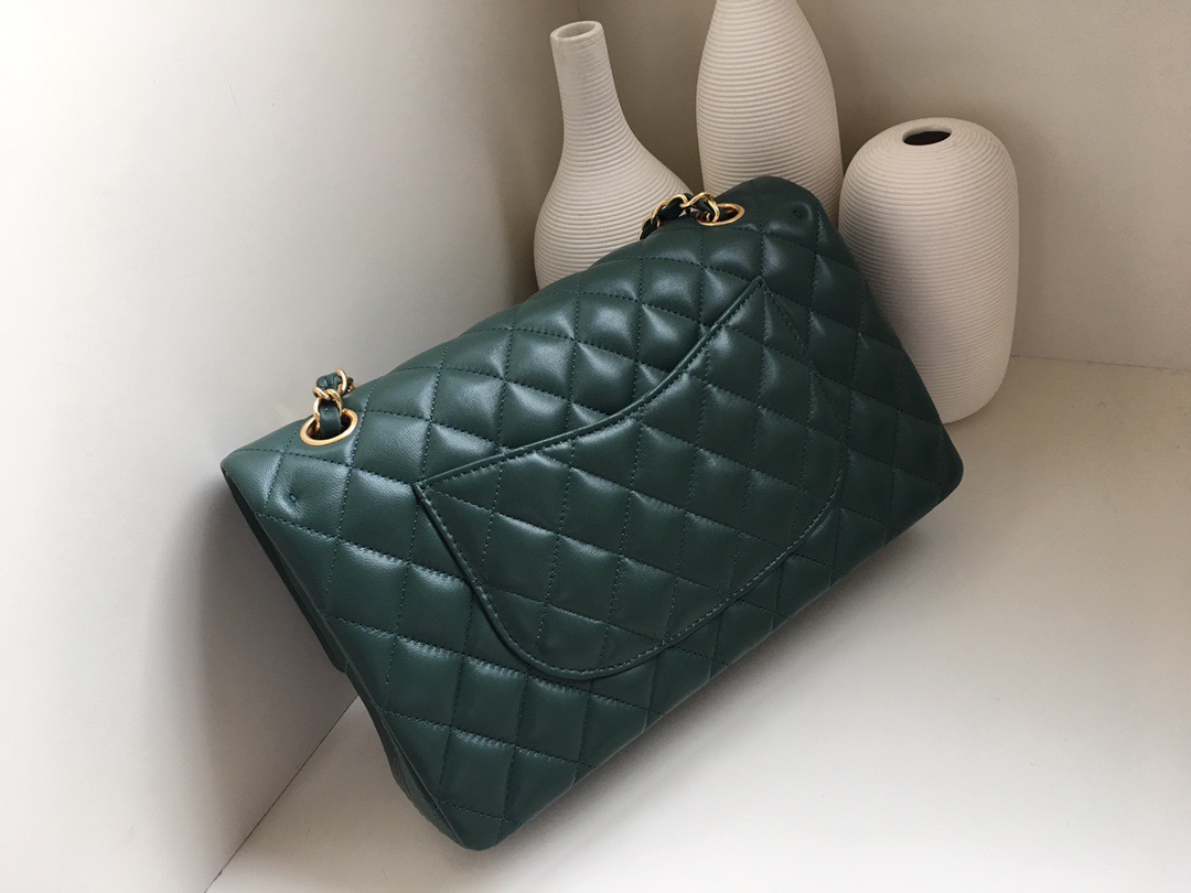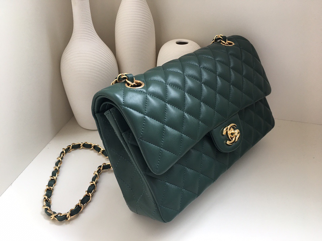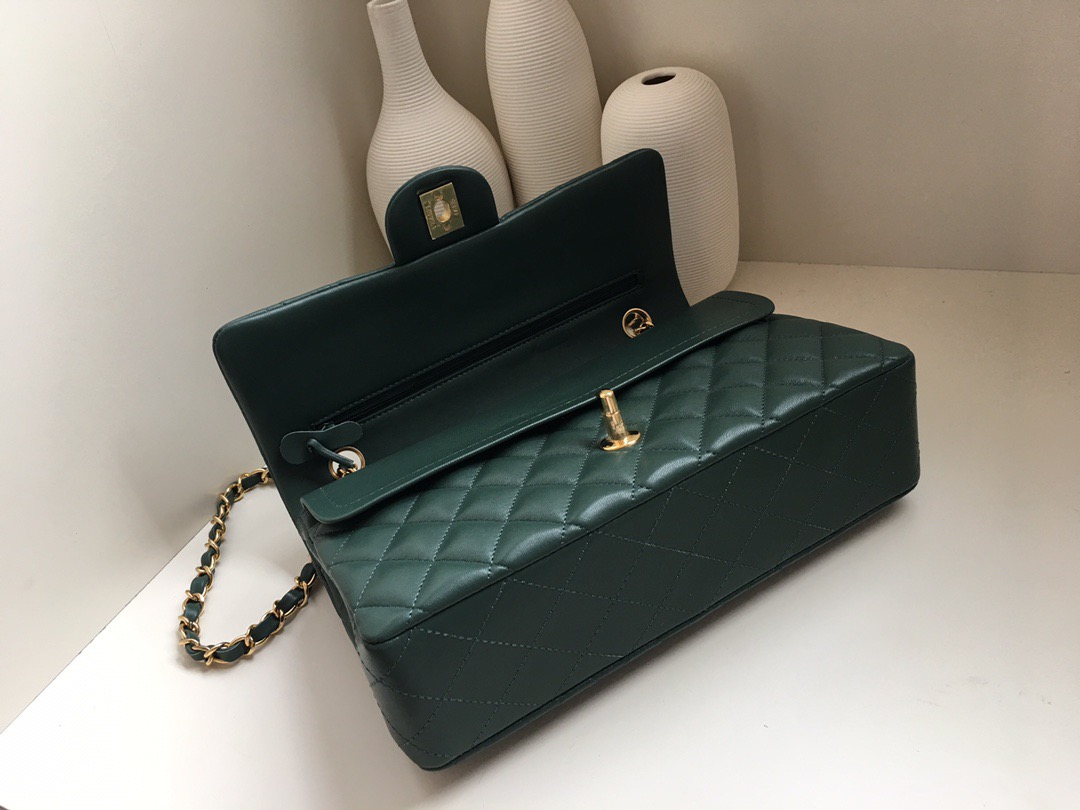 Chanel Flap Classic Lambskin. All copper hardware. Medium. Forest Green. Gold Buckle 25cm