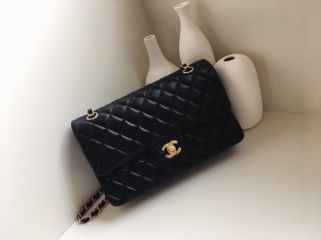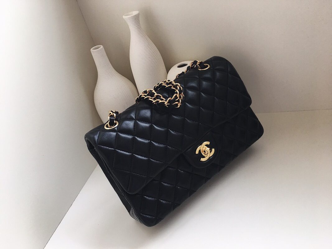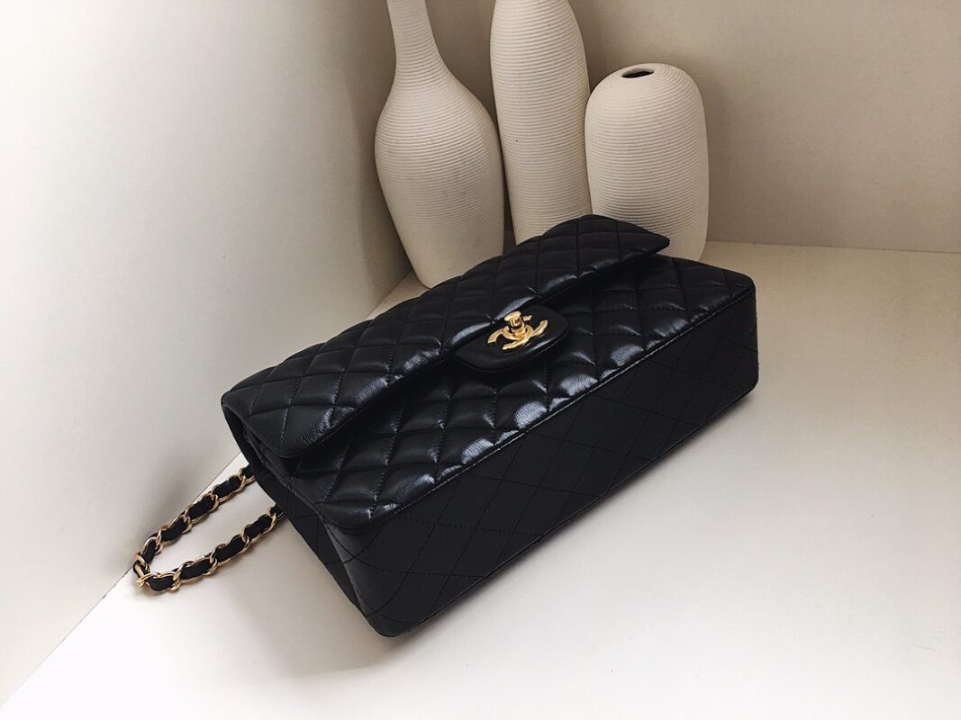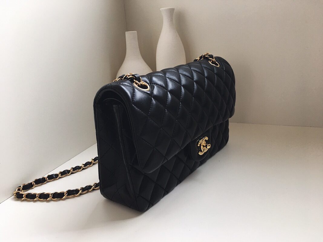 Classic Flap classic Lambskin. All copper hardware. Jumbo Black. Gold Buckle 25cm