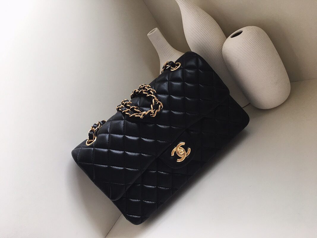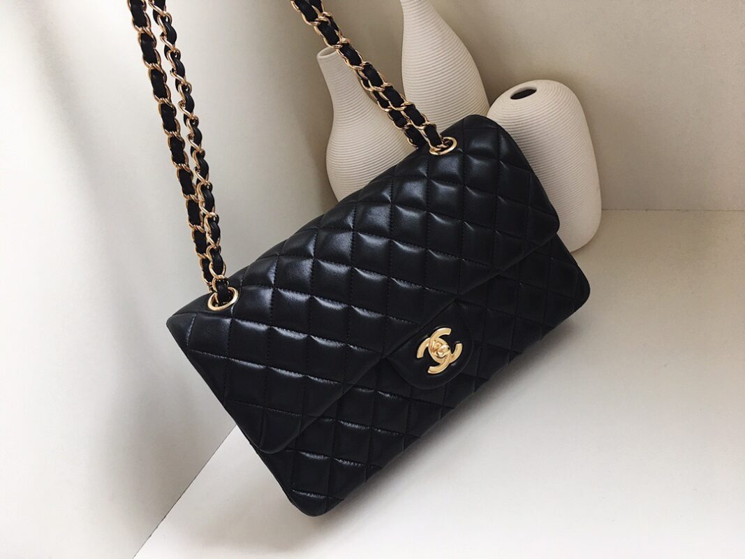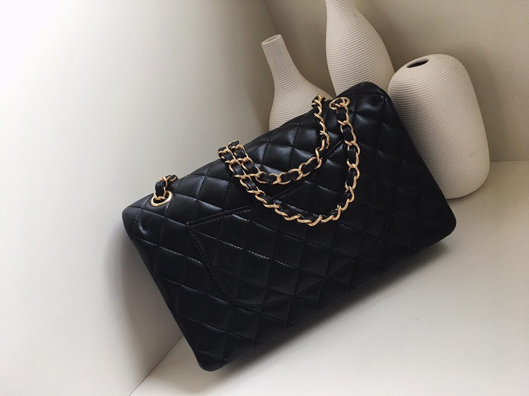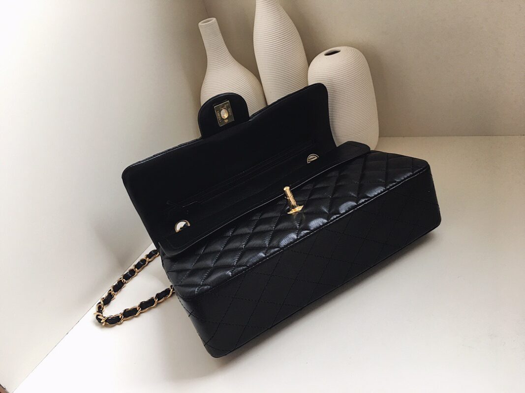 Classic Flap classic Lambskin. All copper hardware. Jumbo Black. Gold Buckle 25cm