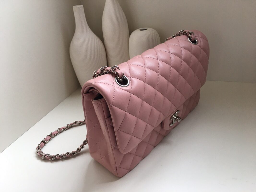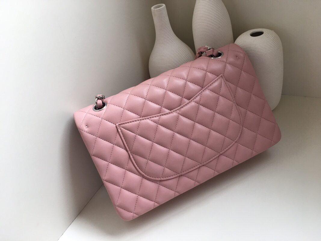 Chanel Classic Flap Lambskin. All copper hardware. Jumbo Nude Pink. Silver Buckle 25cm