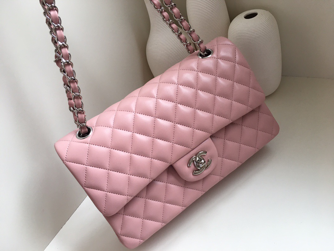 Chanel Classic Flap Lambskin. All copper hardware. Jumbo Nude Pink. Silver Buckle 25cm