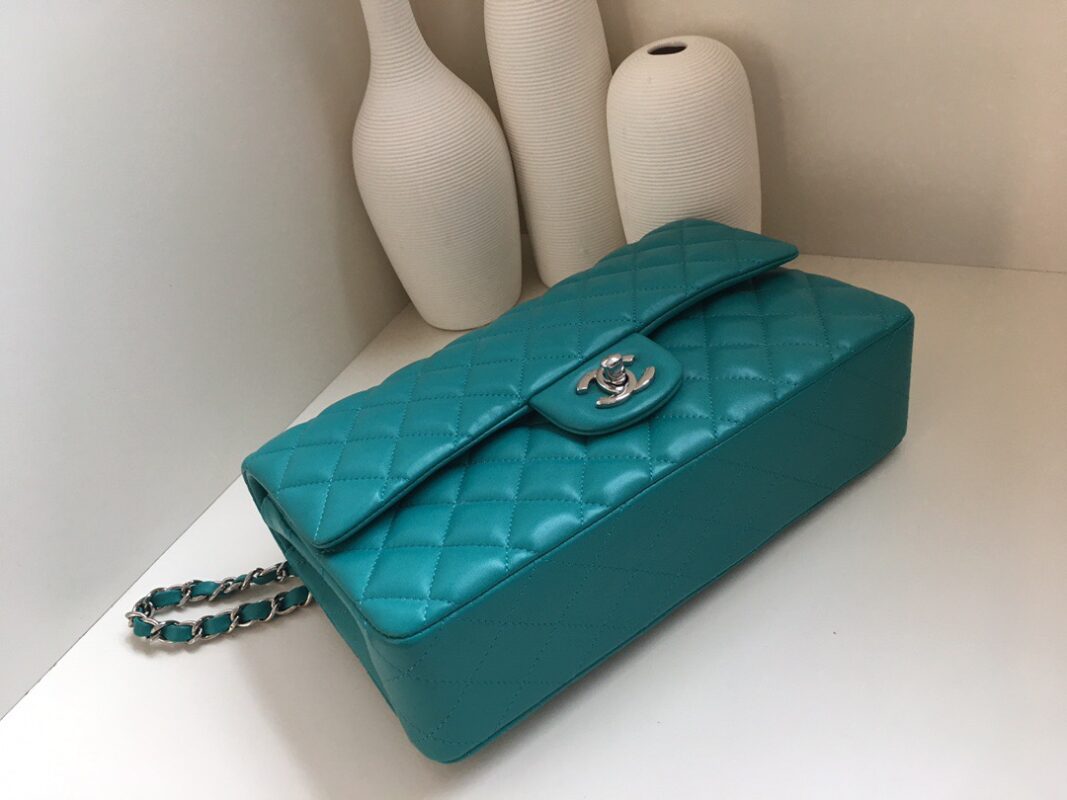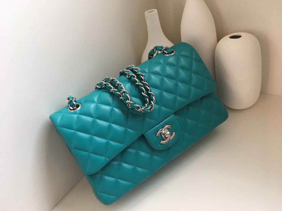Chanel Flap Classic Lambskin. All copper hardware. Medium. Lake Blue. Silver Buckle 25cm