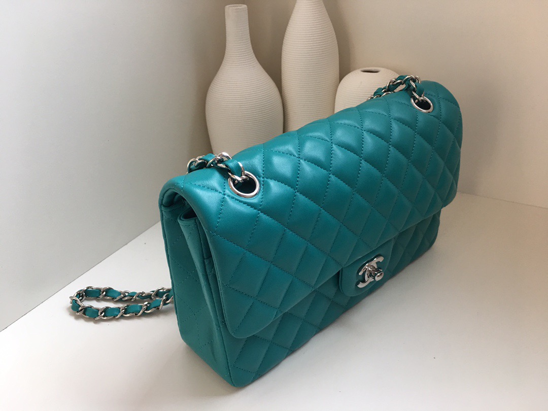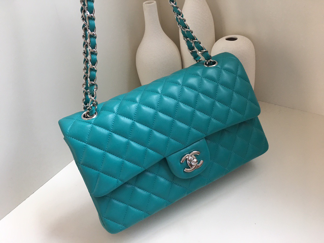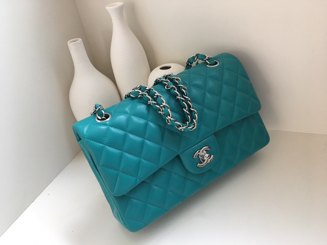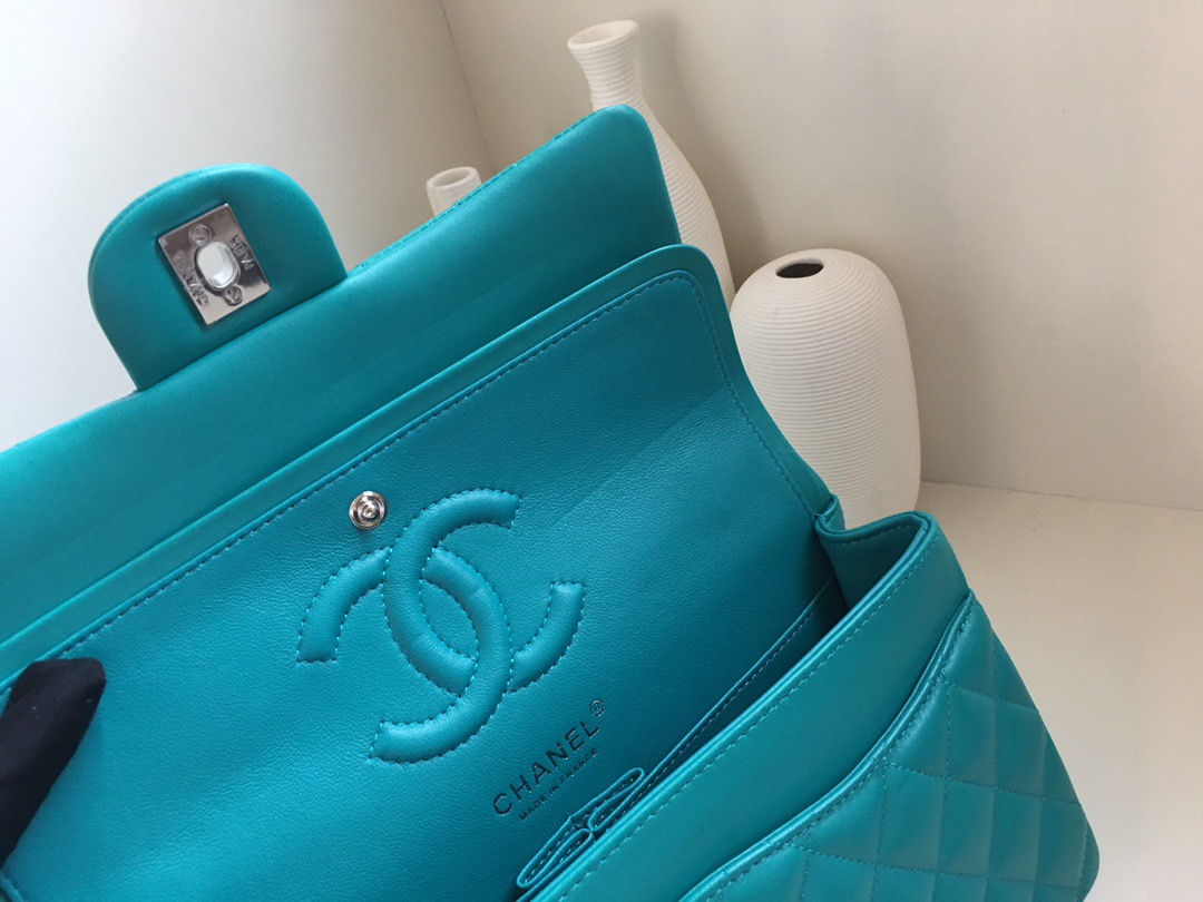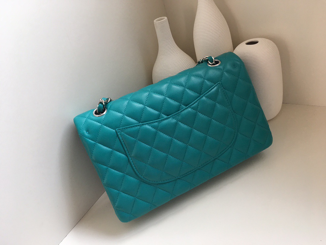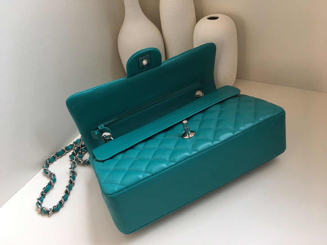 Chanel Flap Classic Lambskin. All copper hardware. Medium. Lake Blue. Silver Buckle 25cm