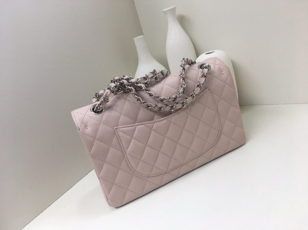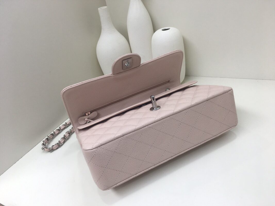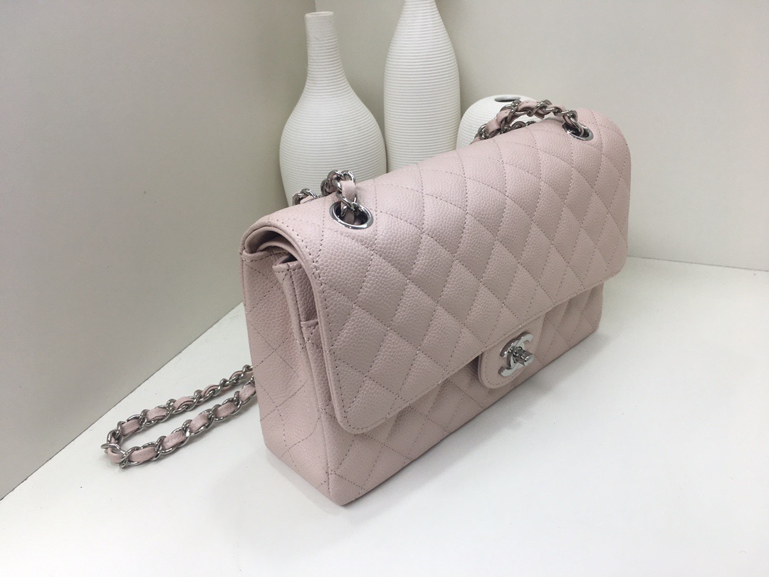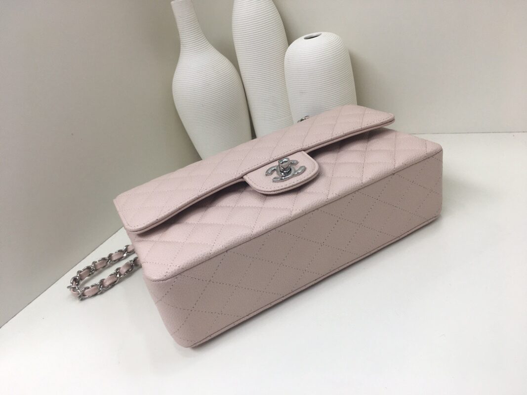 Chanel Classic Flap Caviar leather. All copper hardware. Light Pink. Silver Buckle 25cm