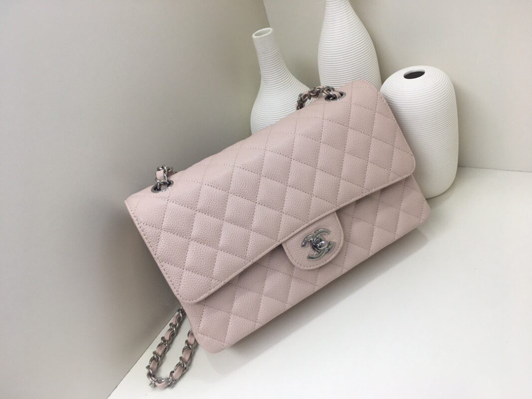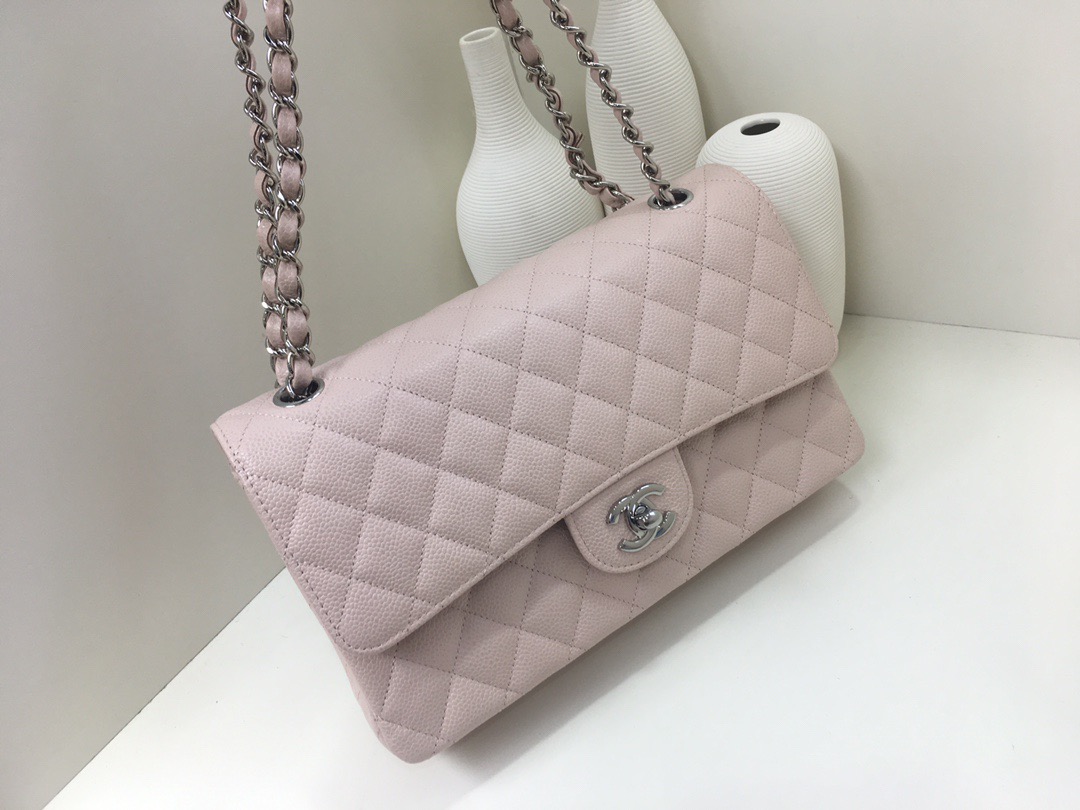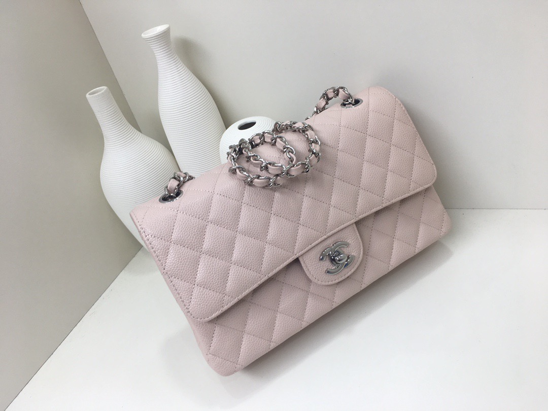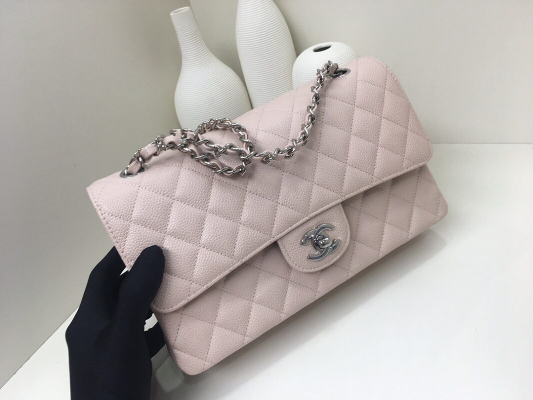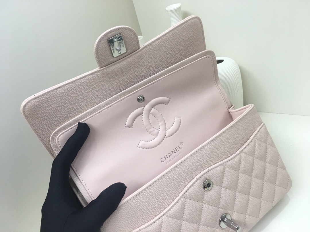Chanel Classic Flap Caviar leather. All copper hardware. Light Pink. Silver Buckle 25cm
