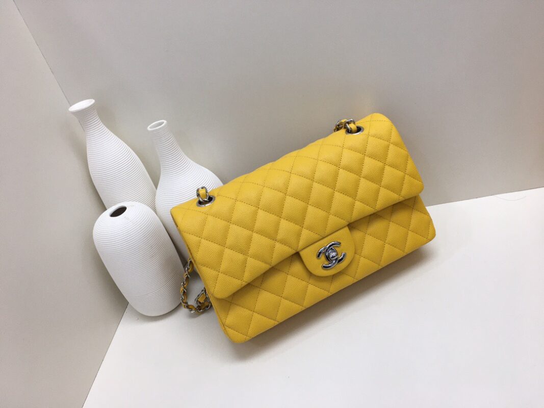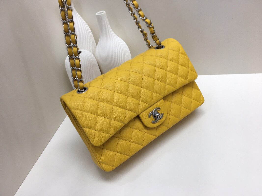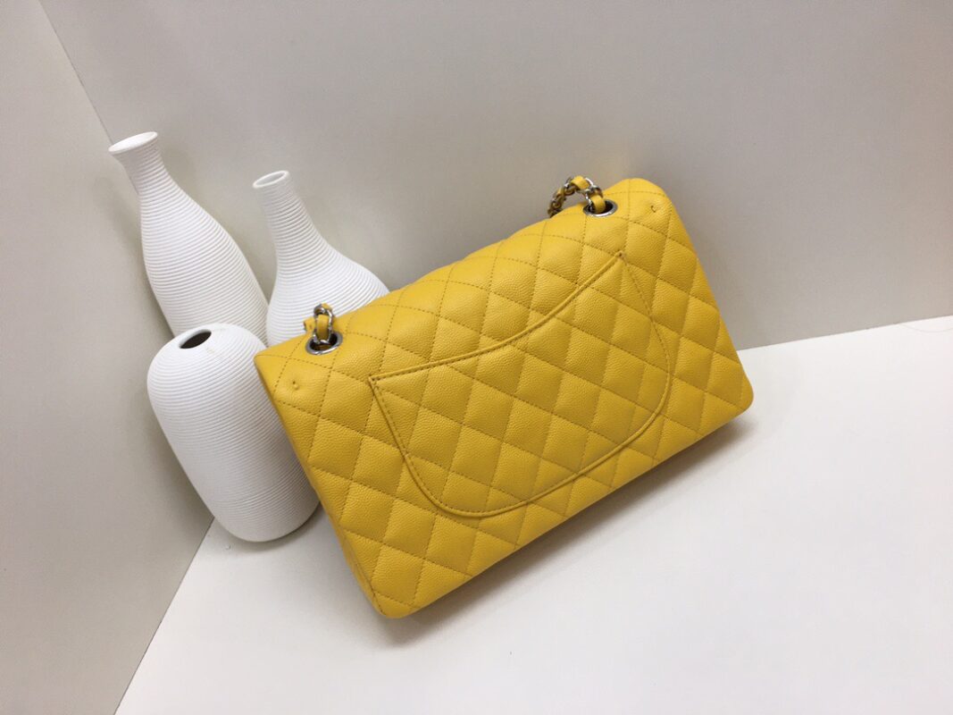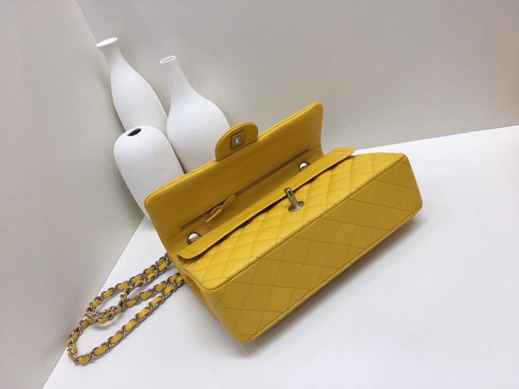 Chanel Classic Flap Lime Calfskin caviar leather. Full copper hardware. Silver Buckle 25cm