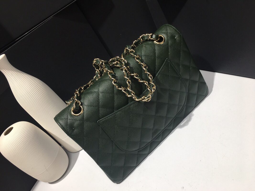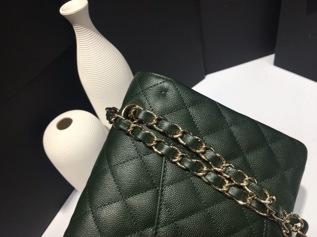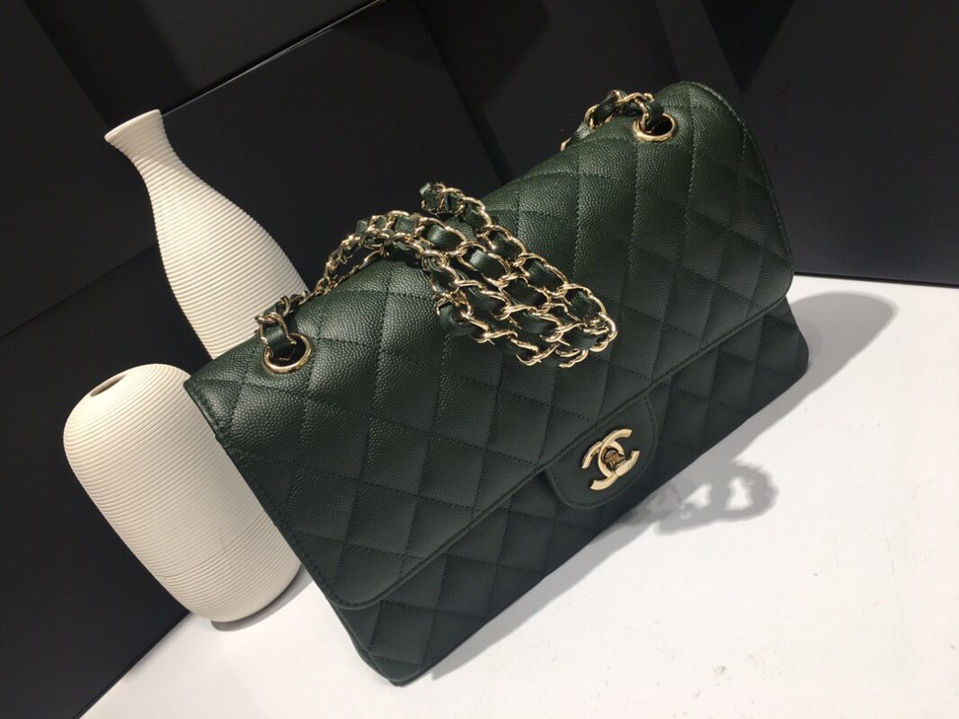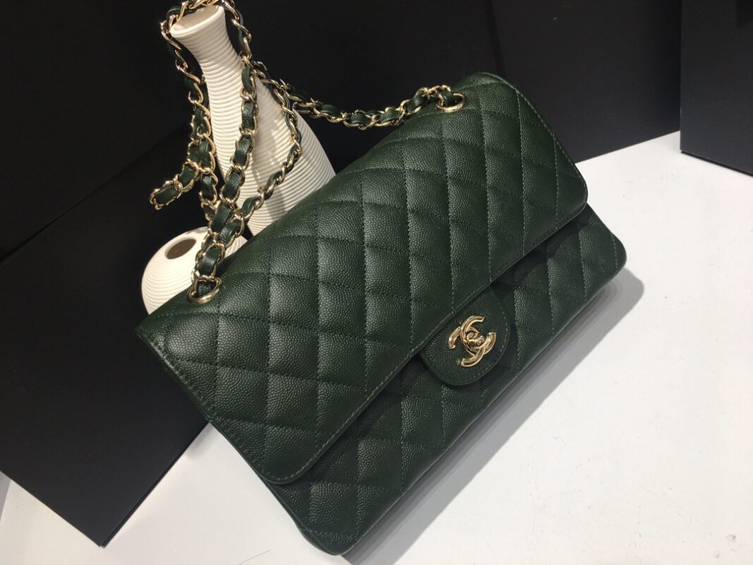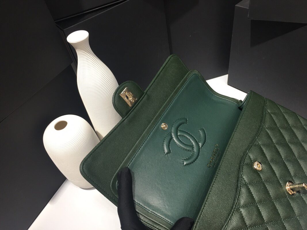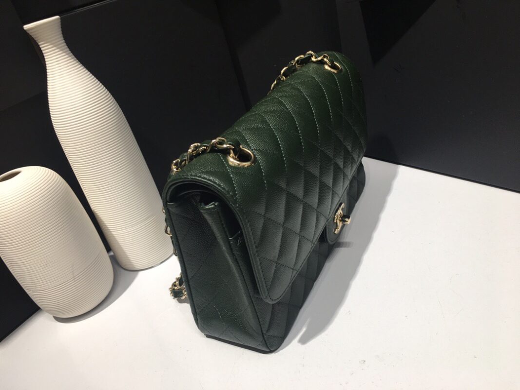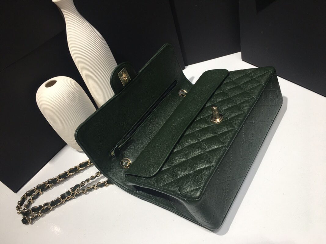 Chanel Classic Flap Fine-grained cowhide. All copper hardware. Malachite Green. Gold Buckle 25cm