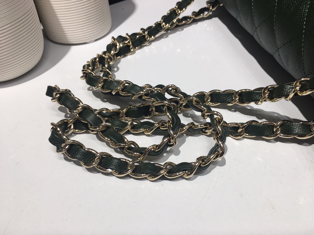 Chanel Classic Flap Fine-grained cowhide. All copper hardware. Malachite Green. Gold Buckle 25cm