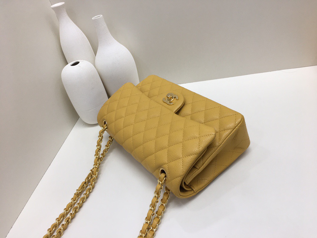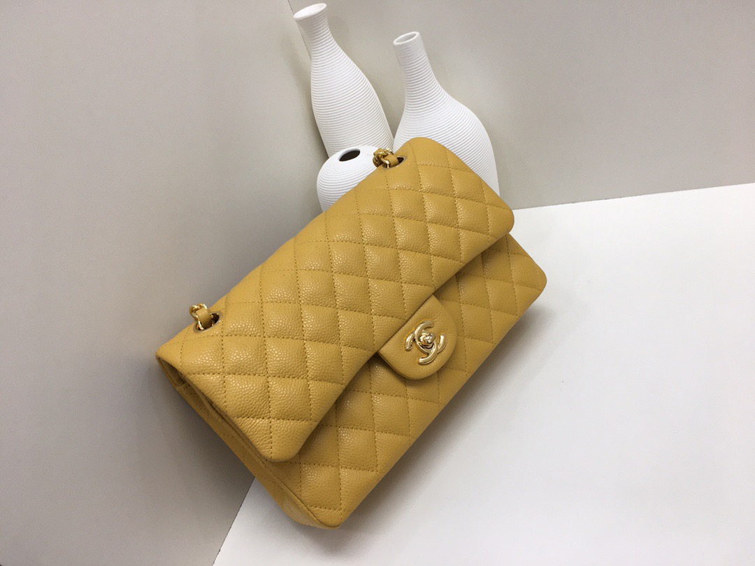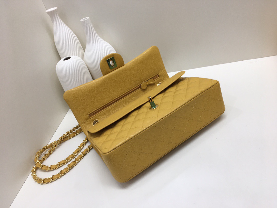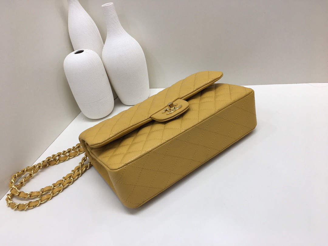Classic Flap Classic Calfskin caviar leather. Full copper hardware. Mango Yellow. Gold Buckle 25cm