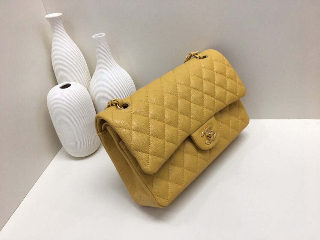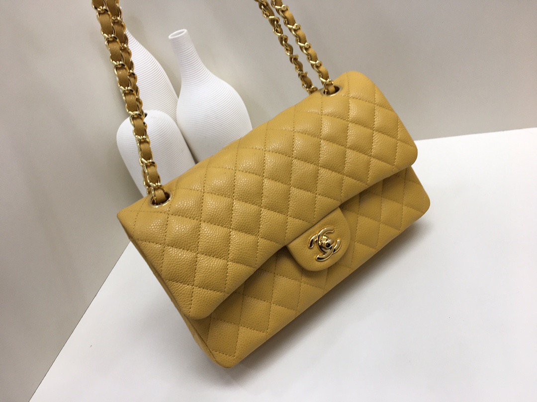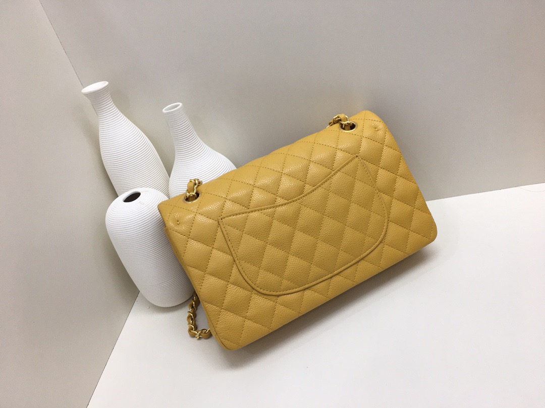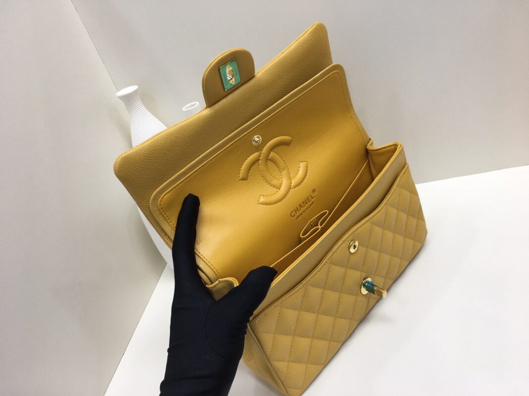 Classic Flap Classic Calfskin caviar leather. Full copper hardware. Mango Yellow. Gold Buckle 25cm
