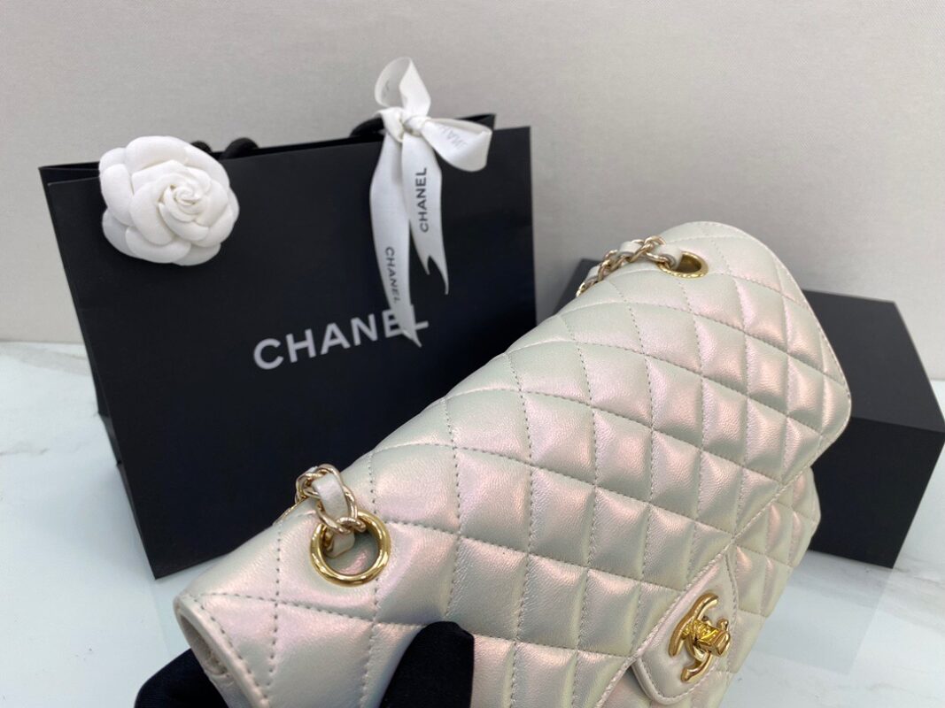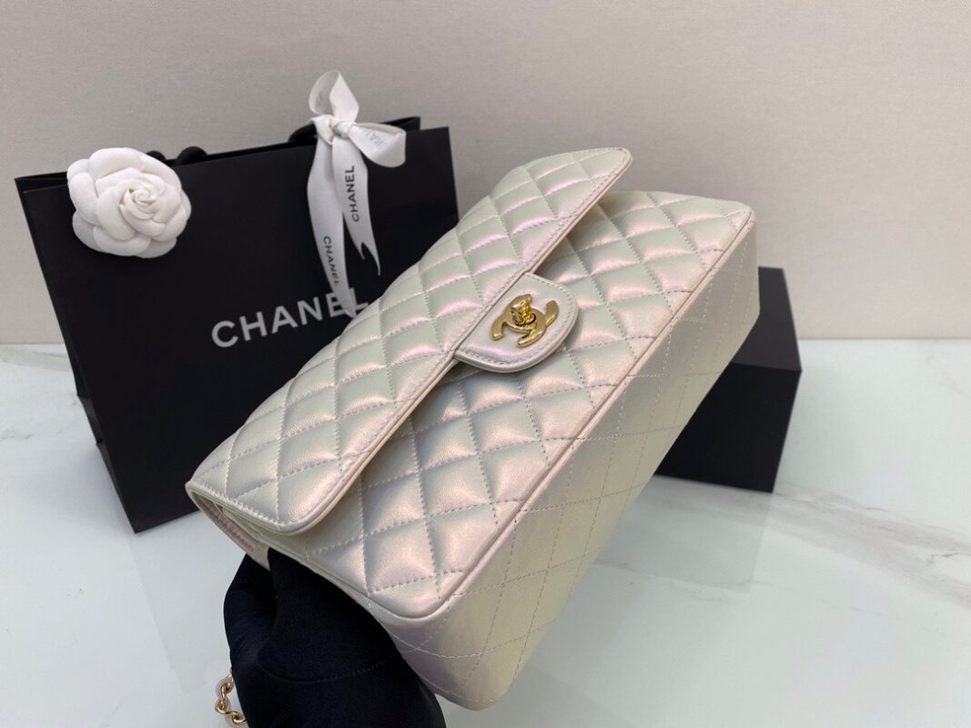 𝘾𝙝𝙖𝙣𝙚𝙡 21Classic Flap Pearl White. Lambskin 25cm