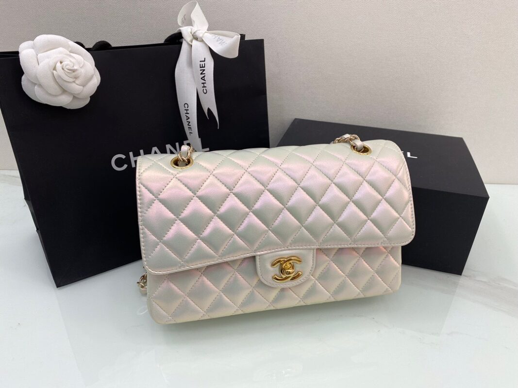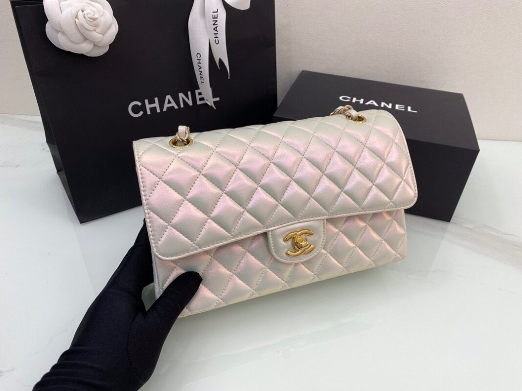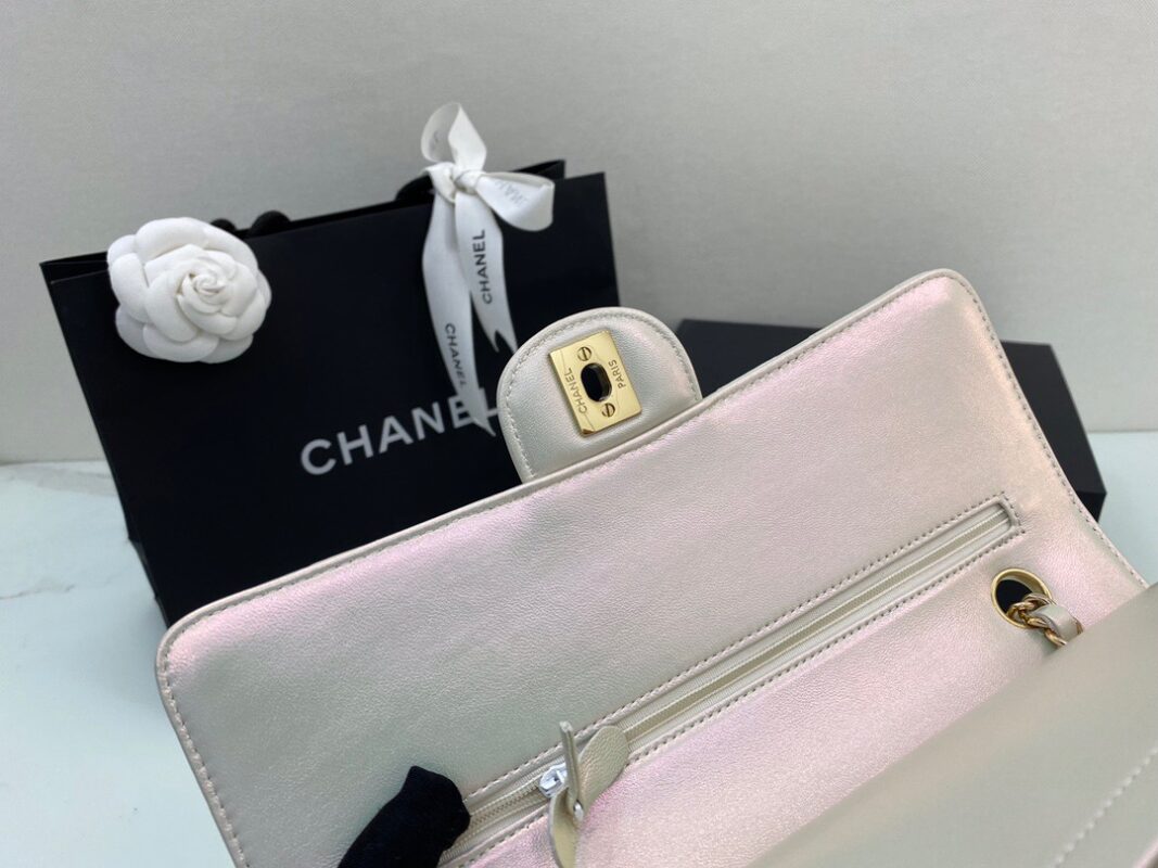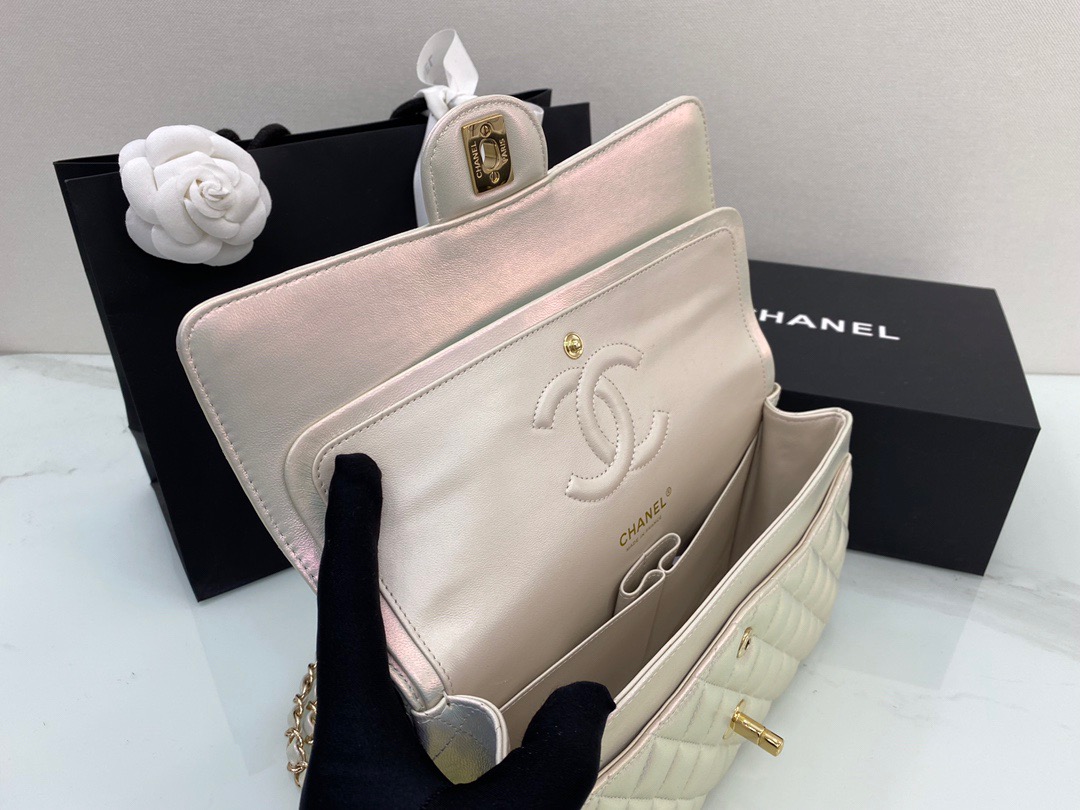 𝘾𝙝𝙖𝙣𝙚𝙡 21Classic Flap. Pearl White. Lambskin. 25cm