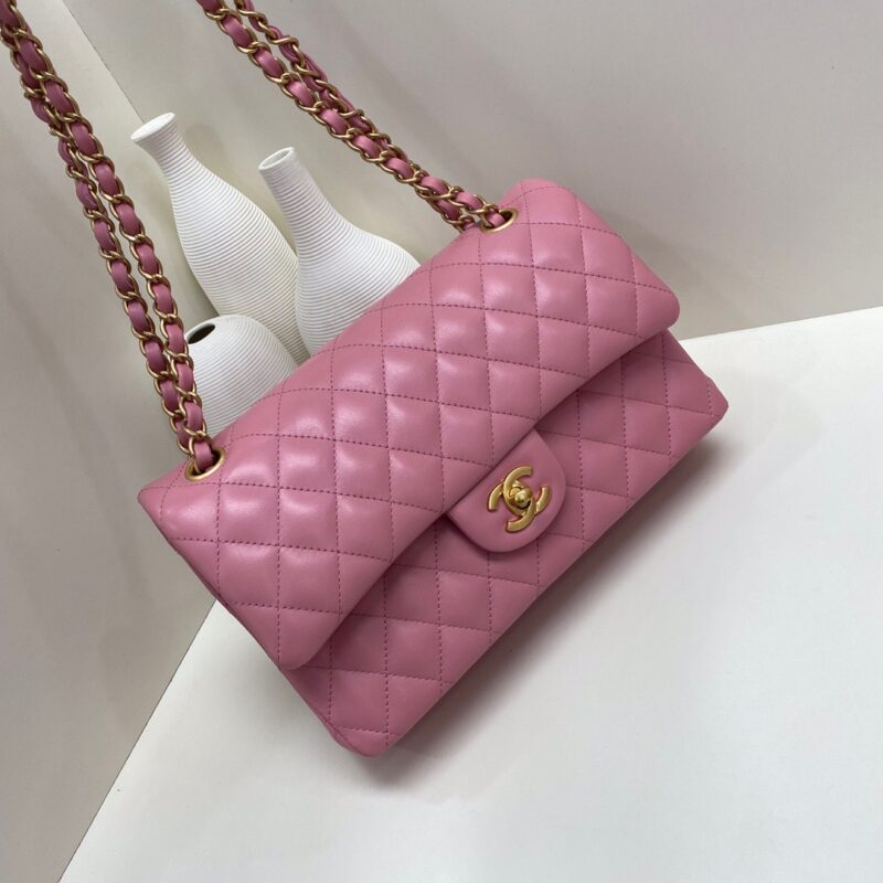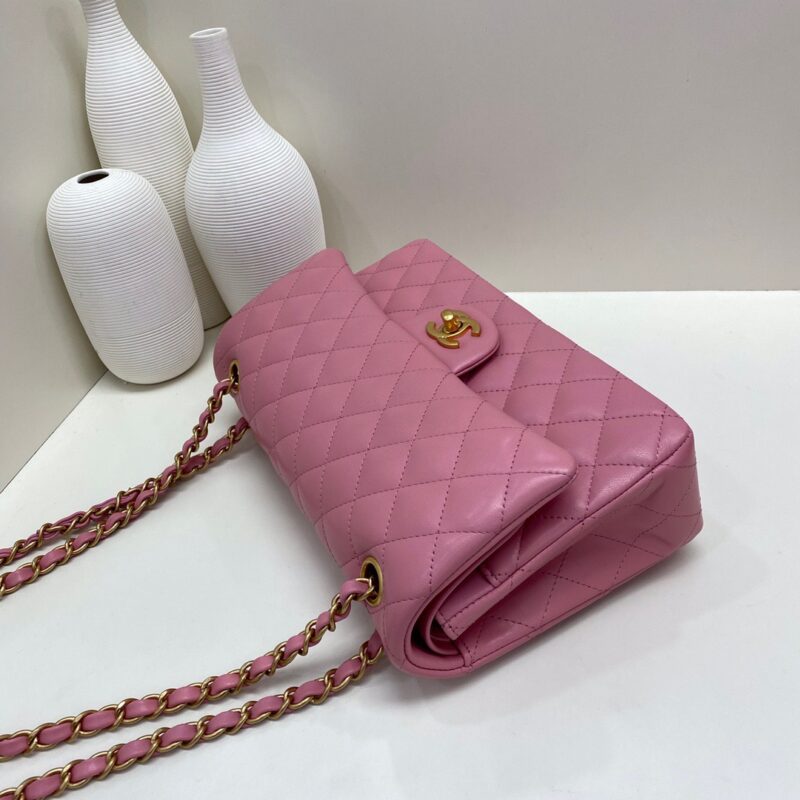 Chanel Flap Classic Lambskin. All copper hardware. Pink. Gold Buckle 25cm