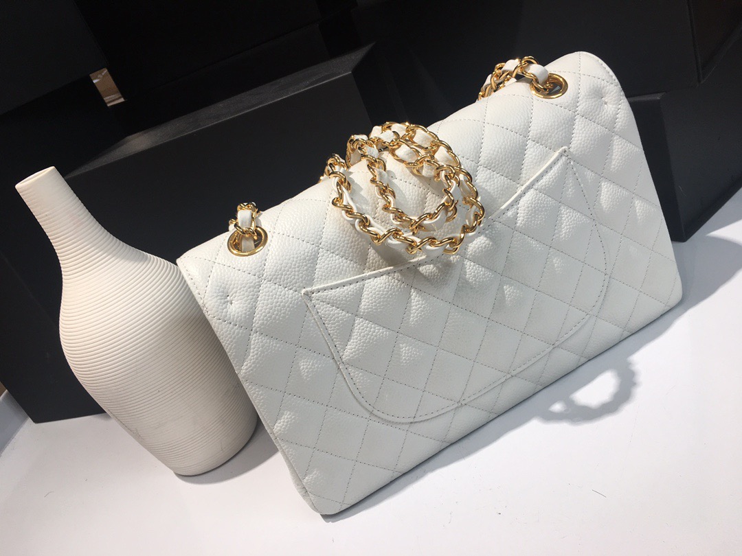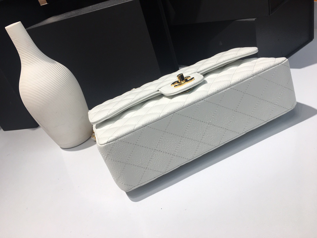 Chanel Classic Flap Fine-grained cowhide. All copper hardware. Haze Blue. Silver Buckle 25cm. Pure White. Platinum Buckle 25cm