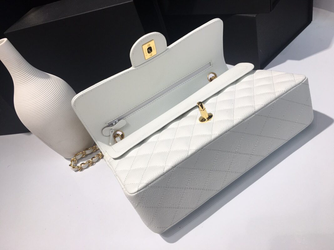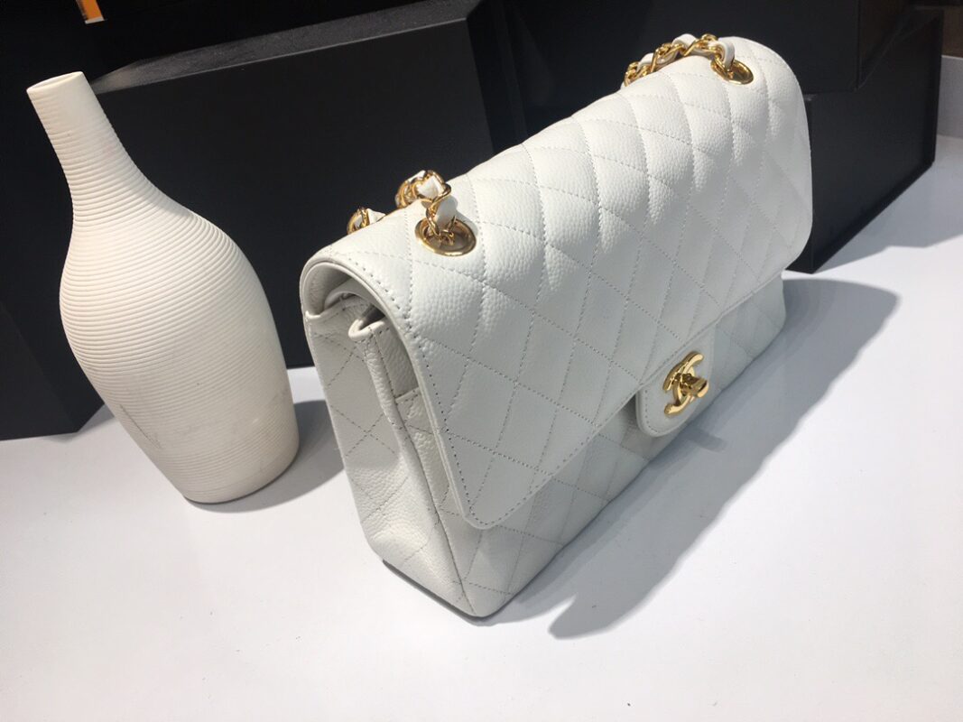 Chanel Classic Flap Caviar leather. All copper hardware. White. Gold Buckle 25cm