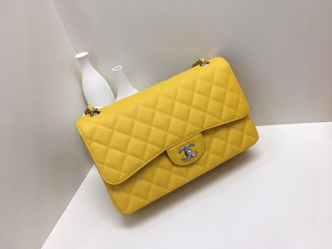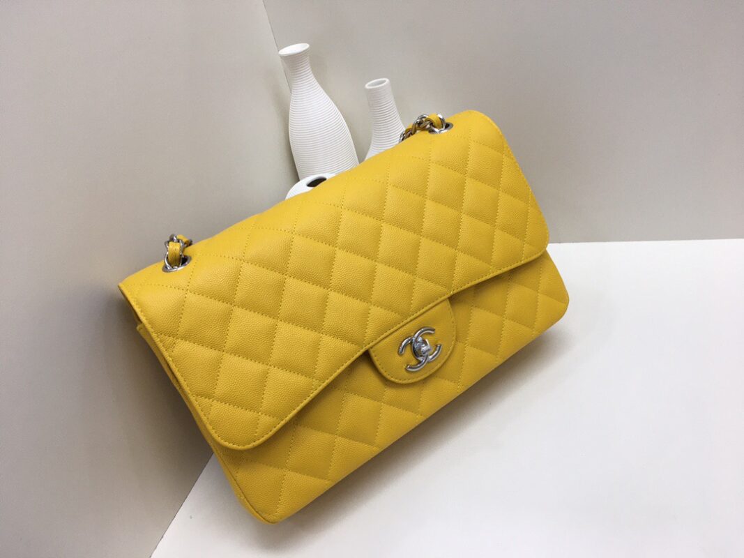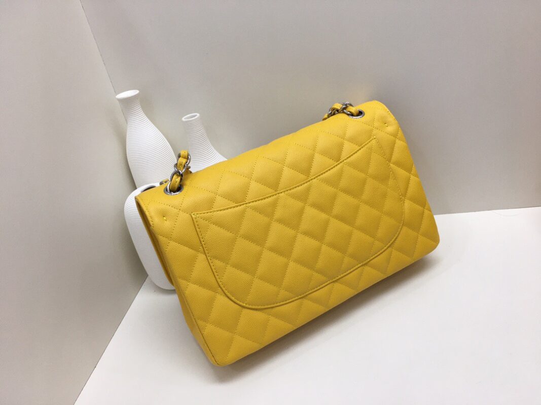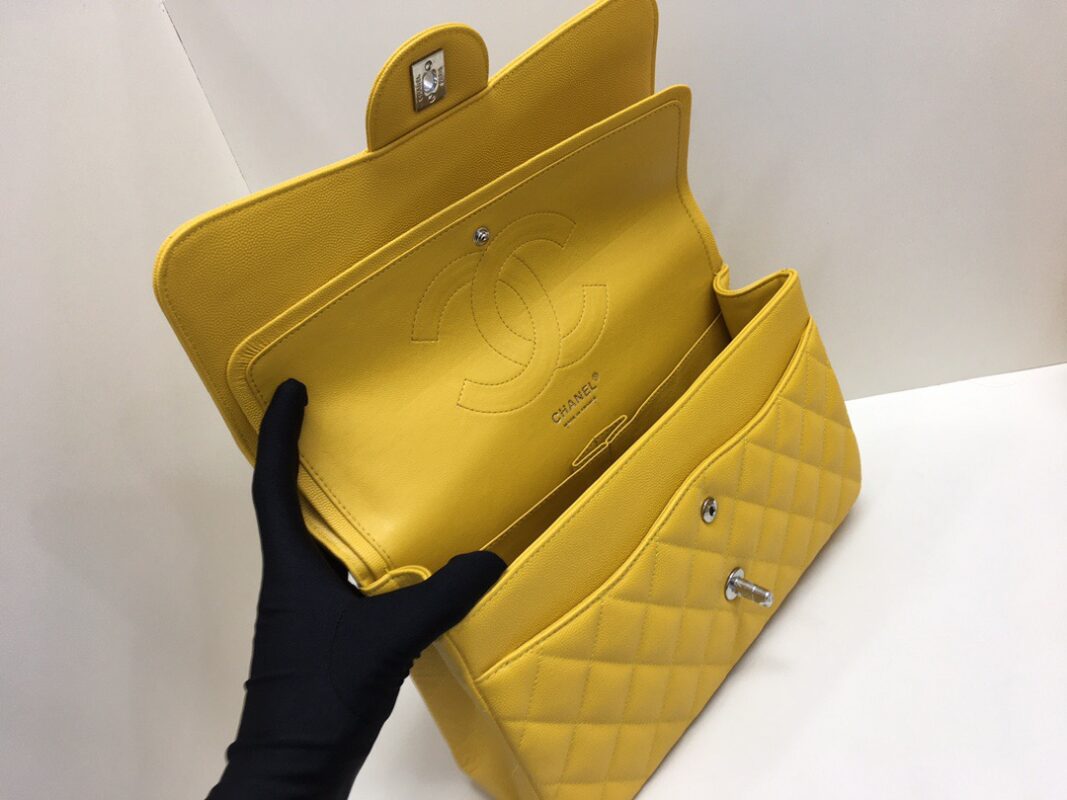 Chanel Classic Flap Lime Calfskin caviar leather. Full copper hardware. Silver Buckle 30cm