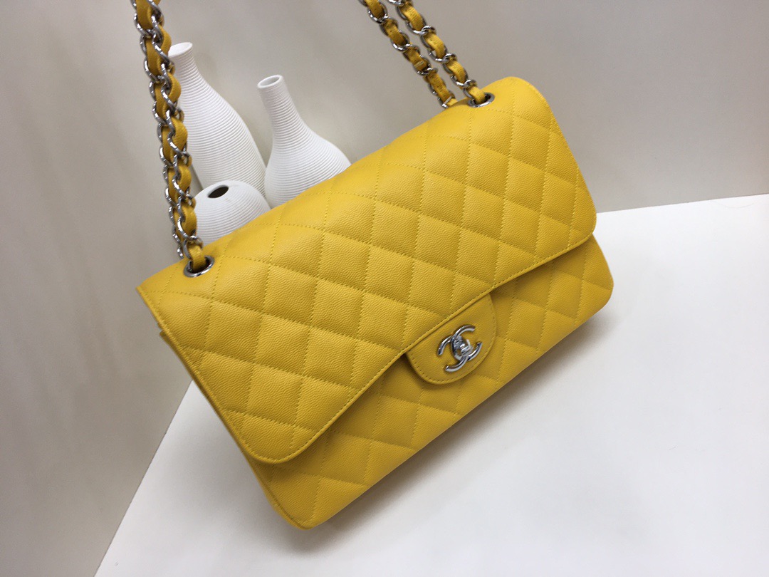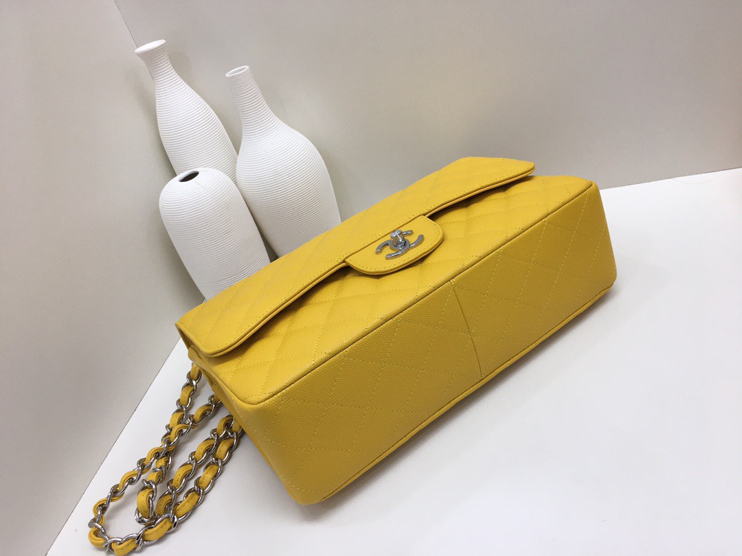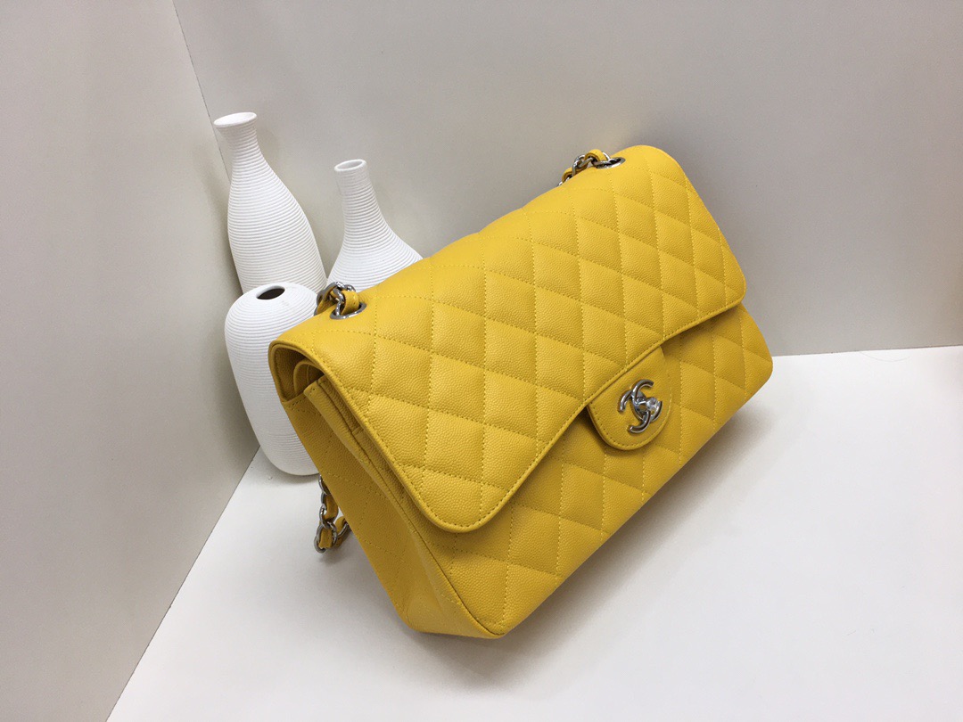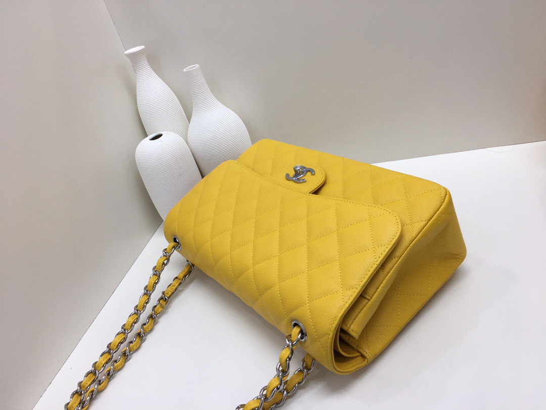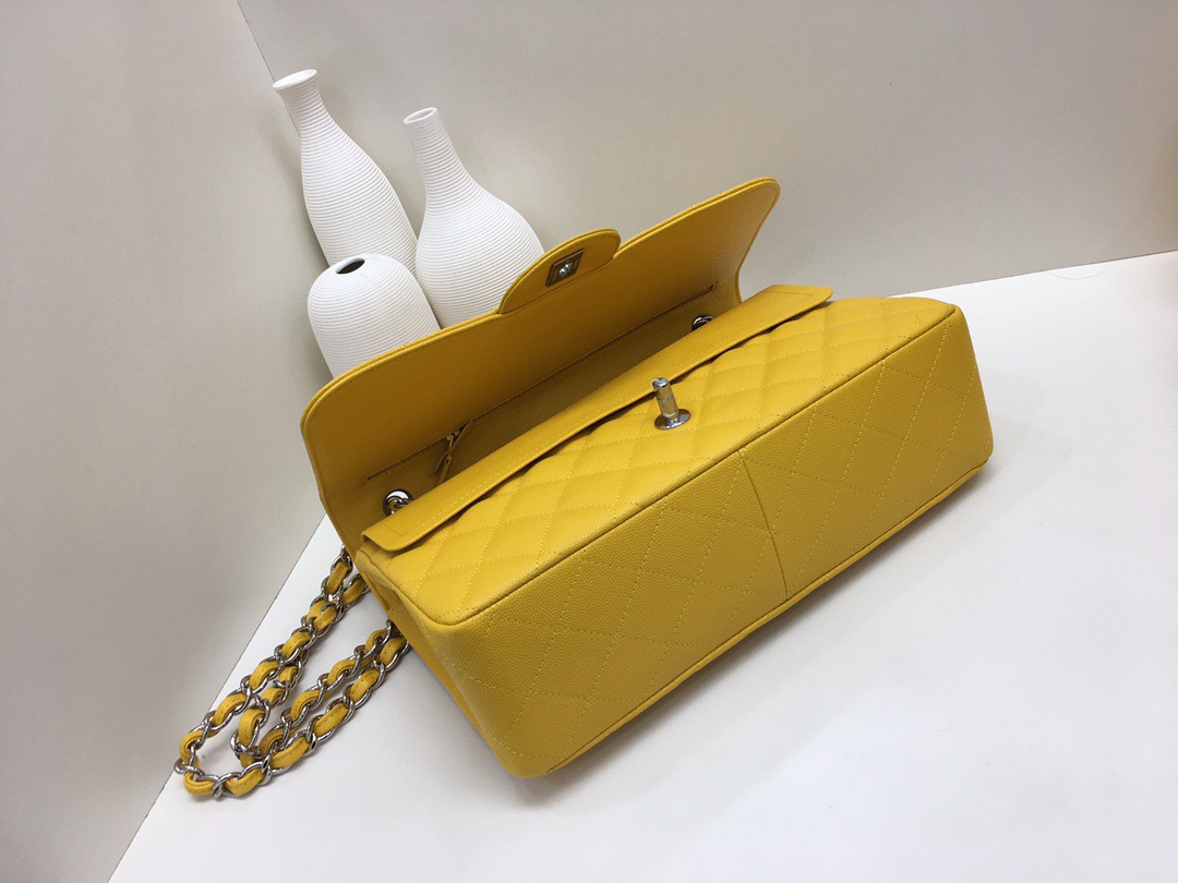 Chanel Classic Flap Lime Calfskin caviar leather. Full copper hardware. Silver Buckle 30cm