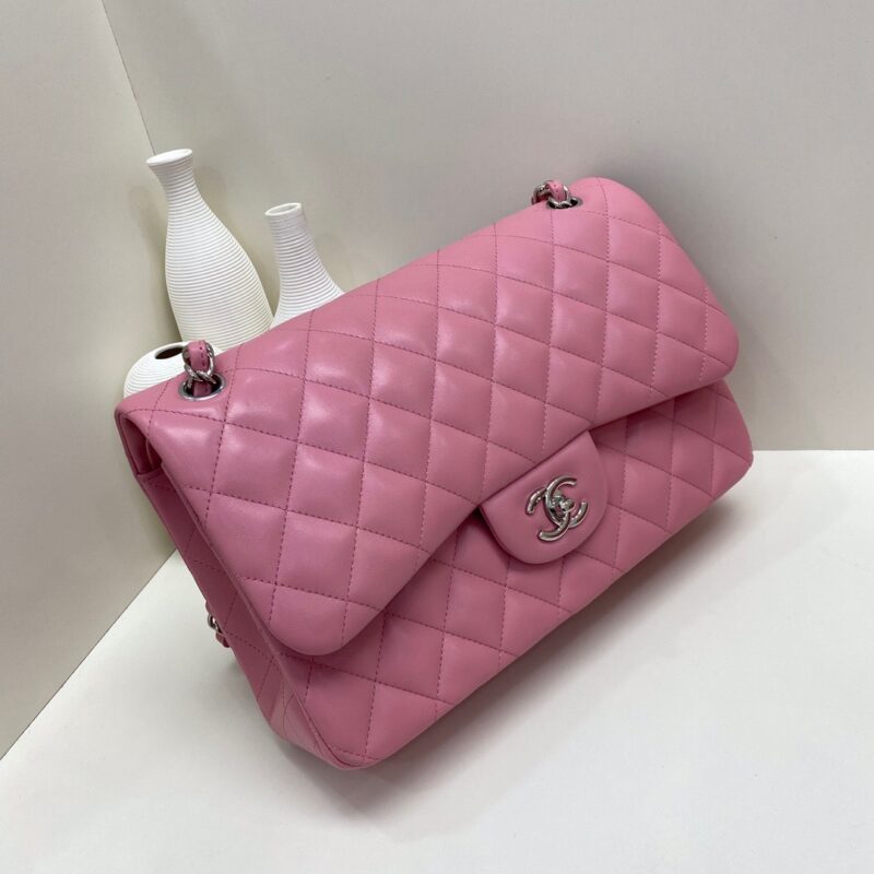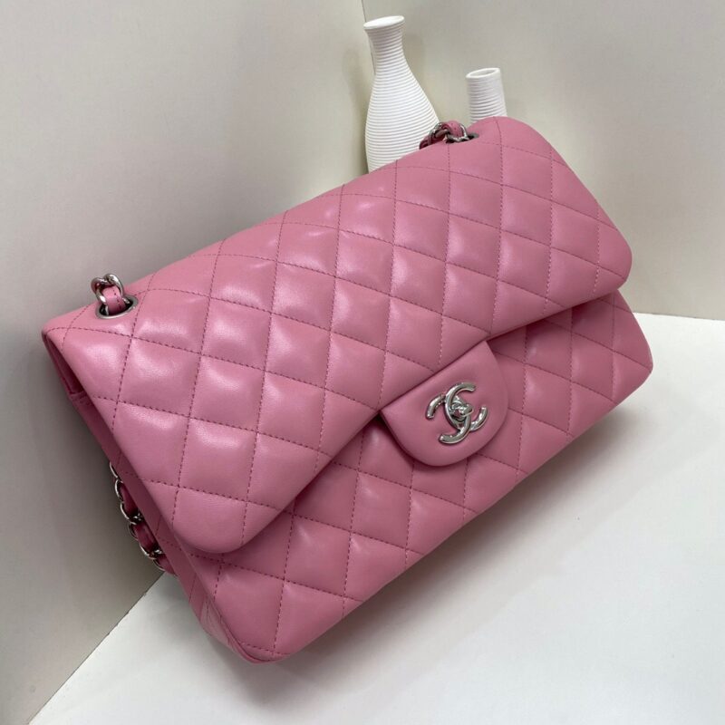 Chanel Flap Classic Lambskin. All copper hardware. Pink. Silver Buckle 30cm