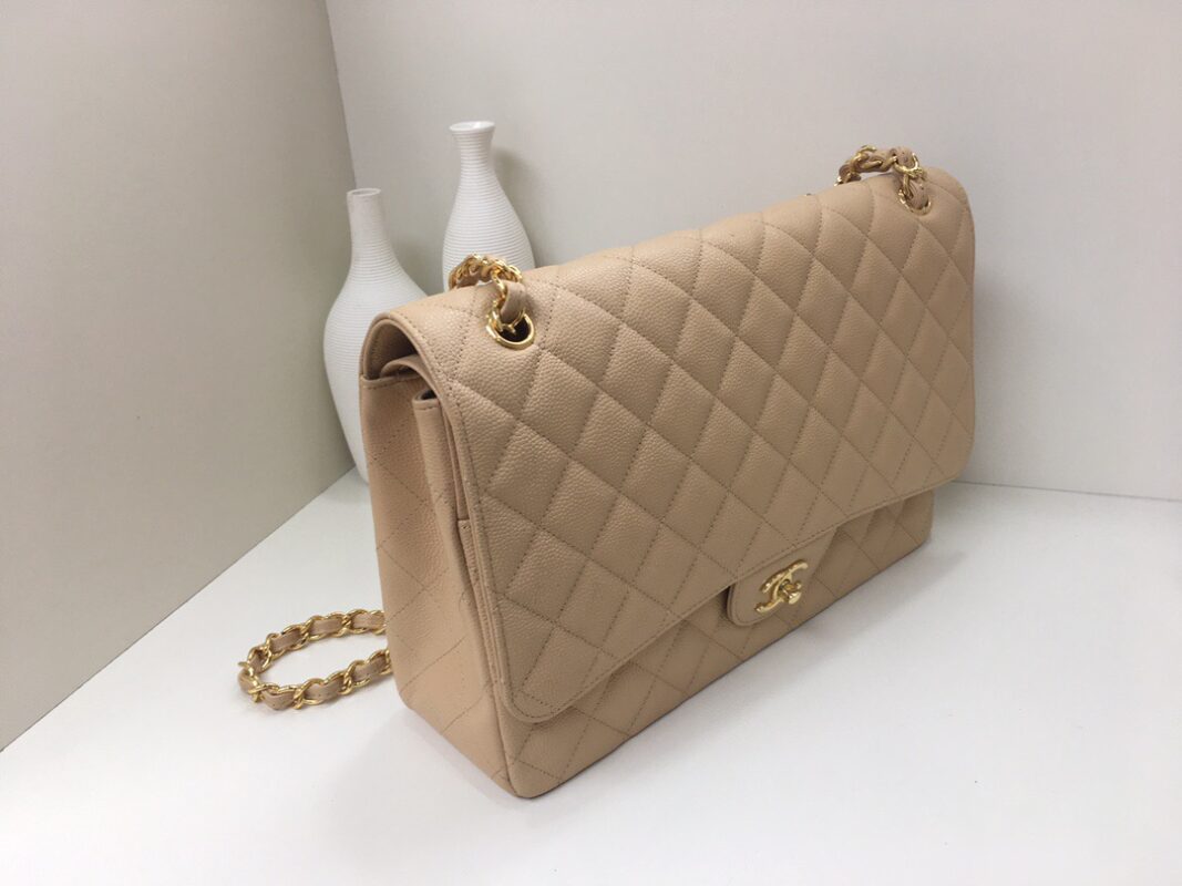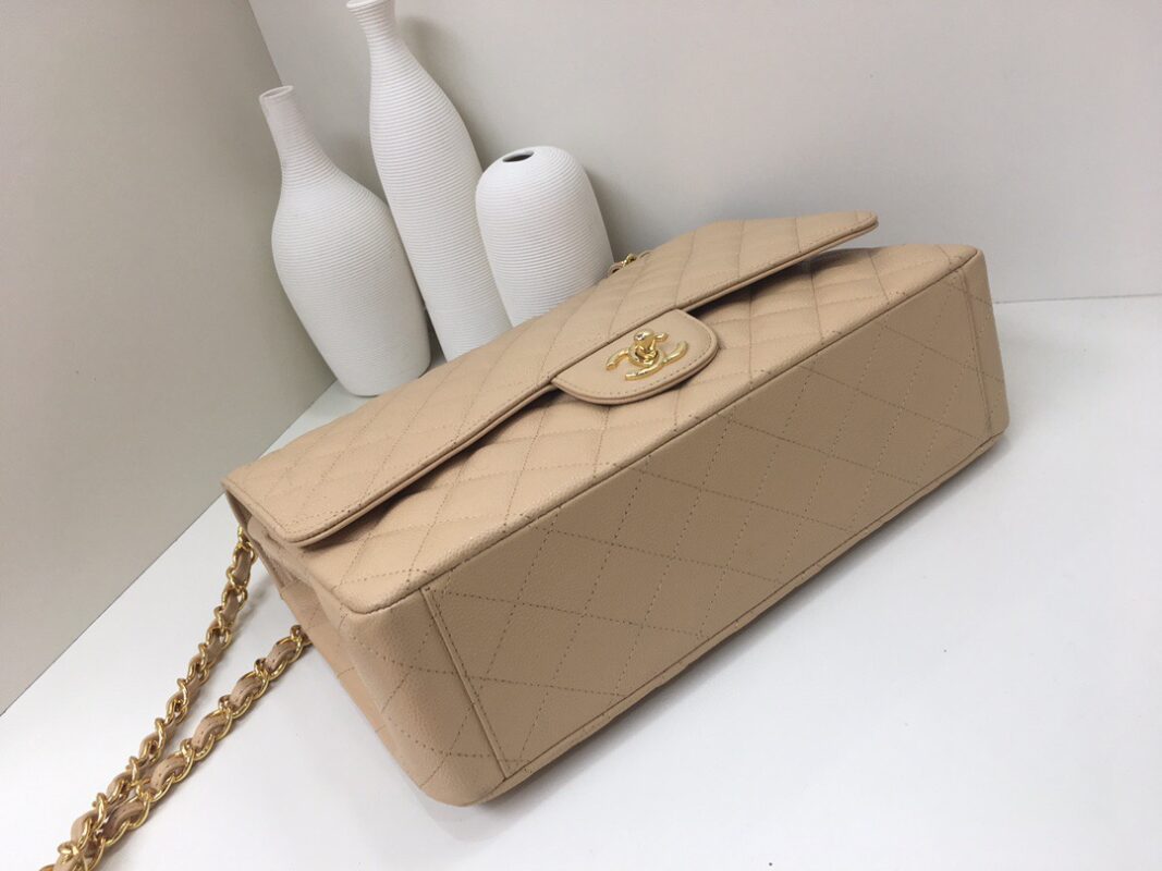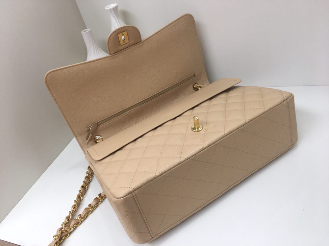 Classic Flap Classic Caviar leather. All copper hardware. Apricot. Gold Buckle 33cm