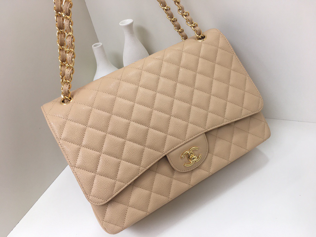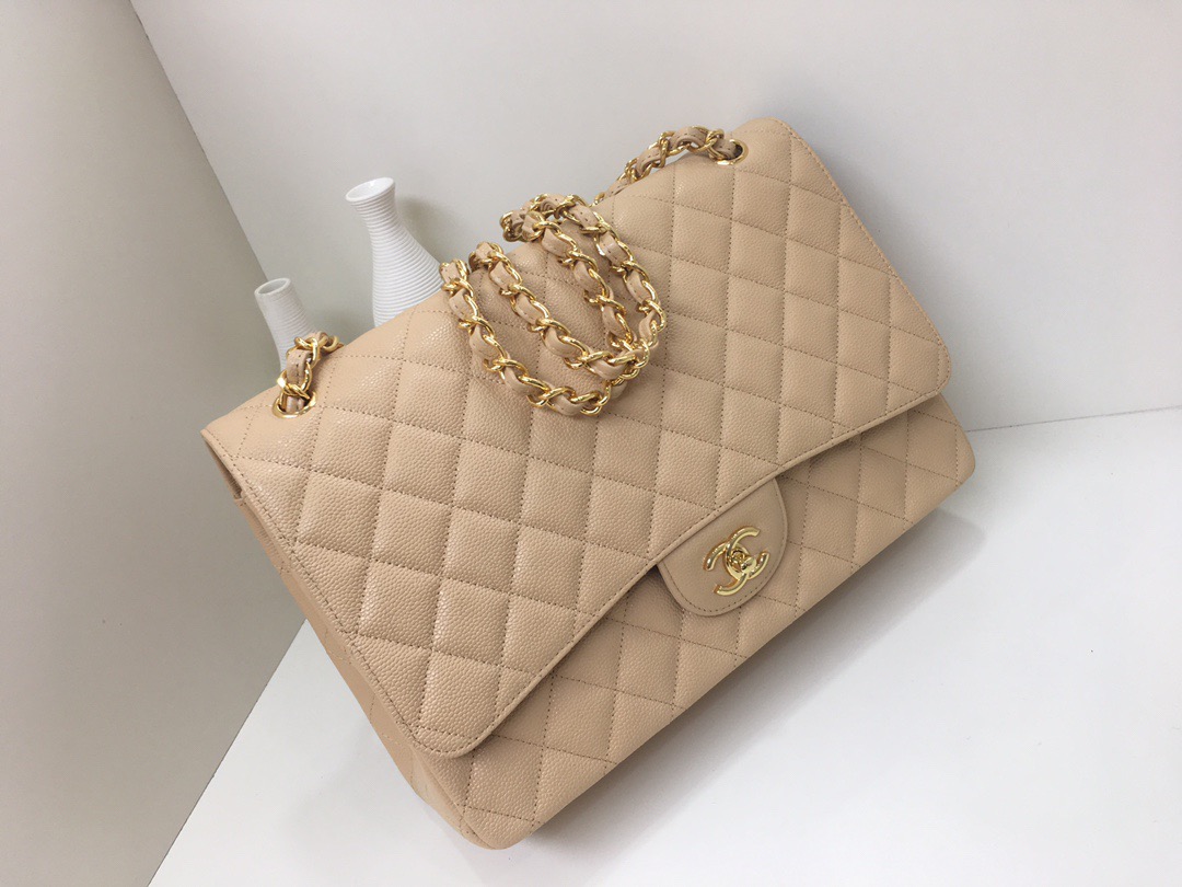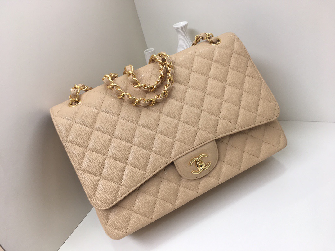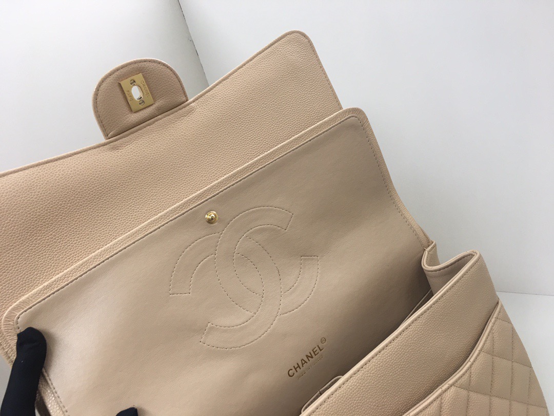 Classic Flap Classic Caviar leather. All copper hardware. Apricot. Gold Buckle 33cm