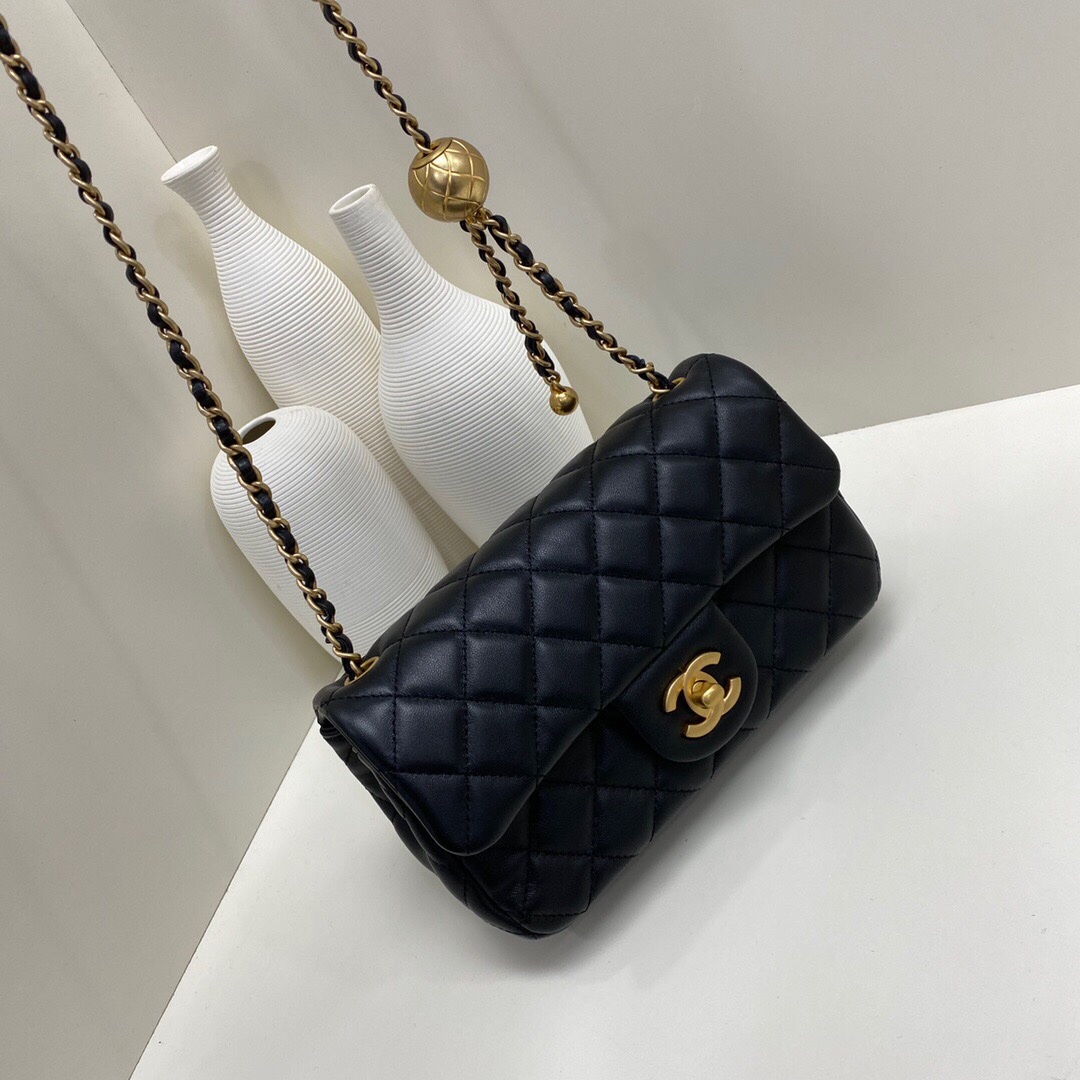 𝘾𝙝𝙖𝙣𝙚𝙡 •🆕🆕🆕Small Golden Ball Classic Flap Lambskin Metal Ball Chain〰️ The length of the chain can be adjusted with a metal ball, suitable for all heights 20cm〰️