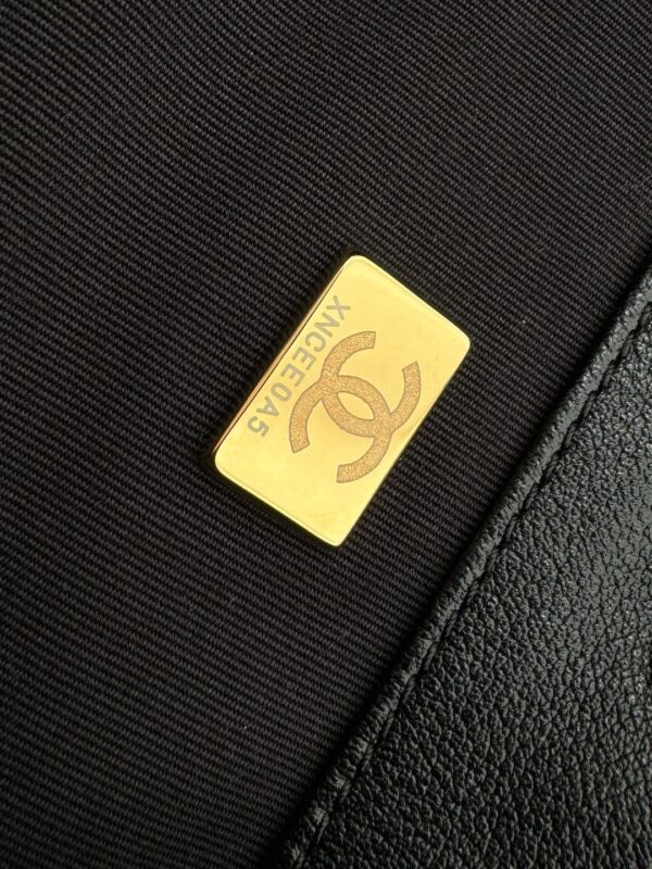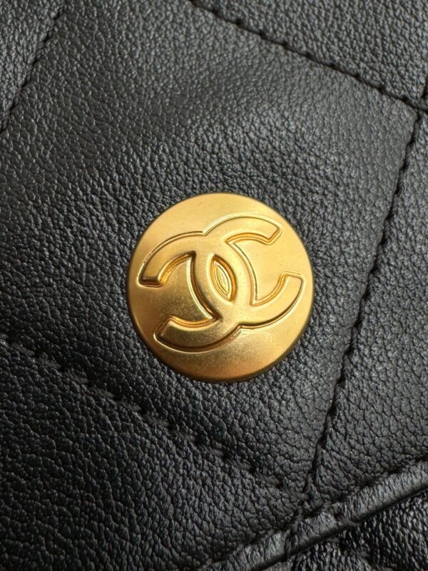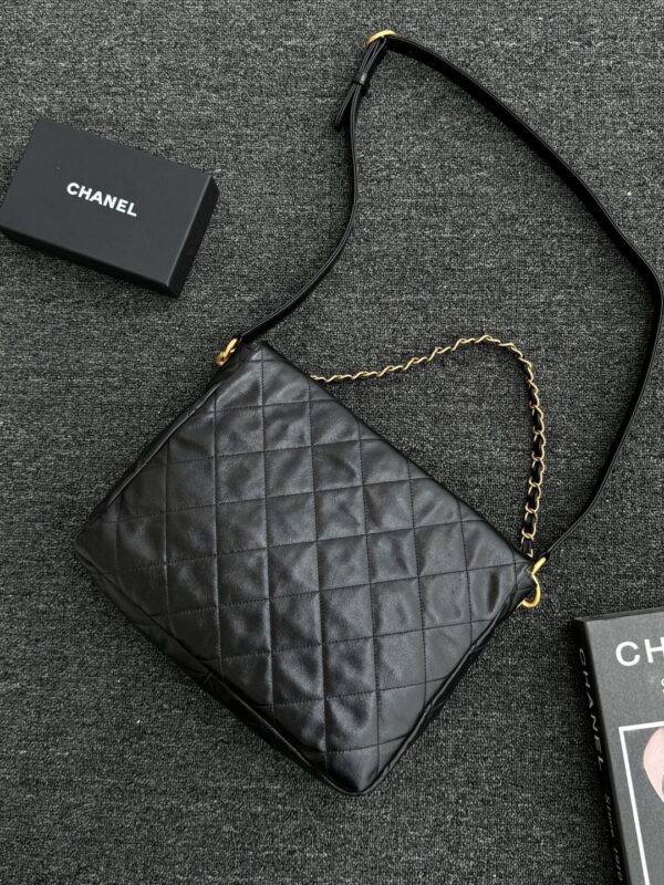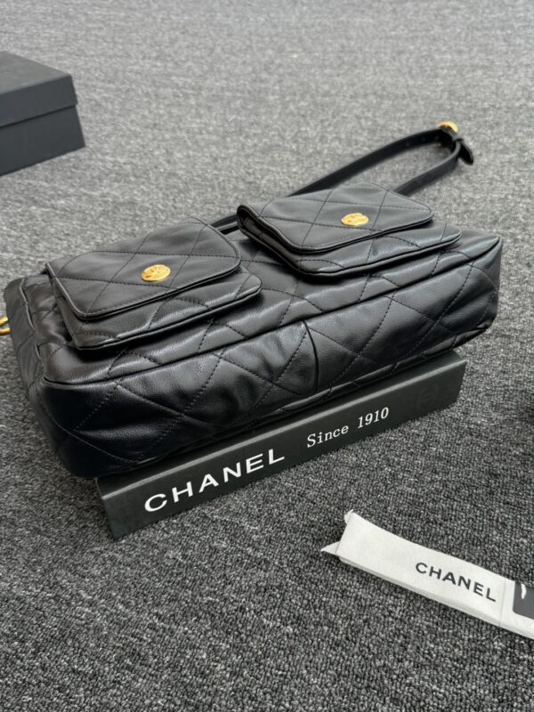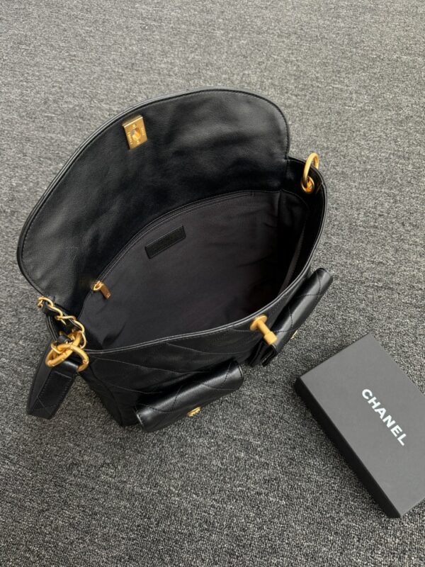 Chanel 24P Double Pocket Hobo Bag Black Shiny Calfskin