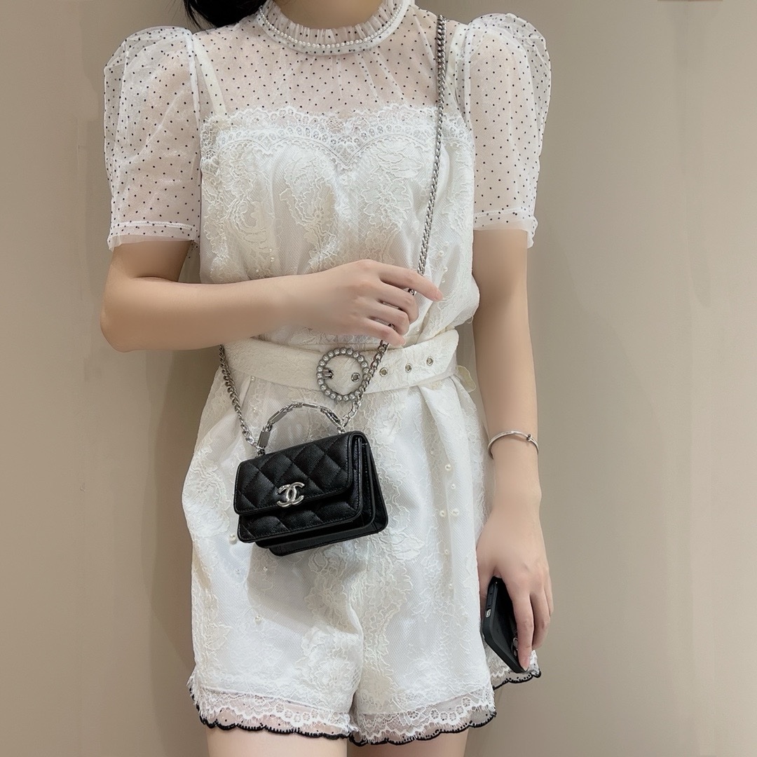 / Chanel Enamel Handle Black Clutch