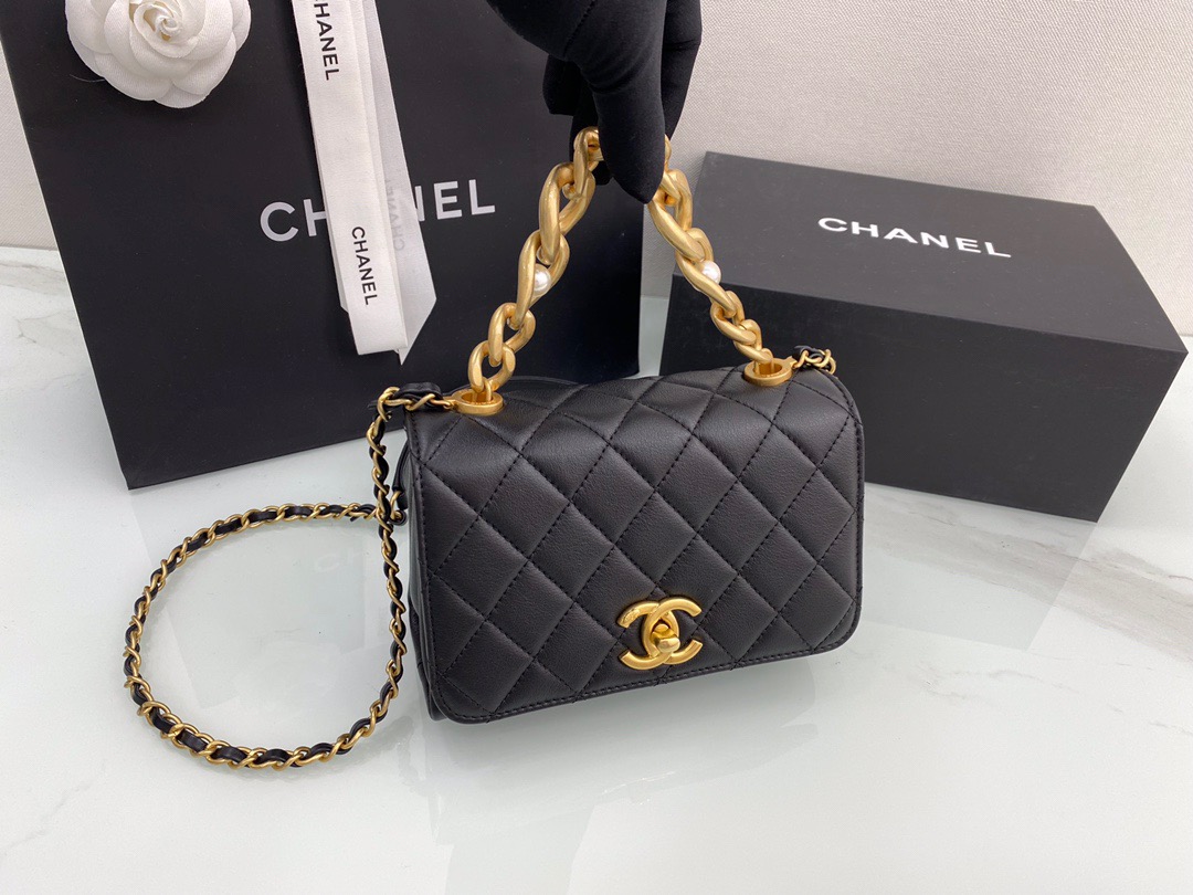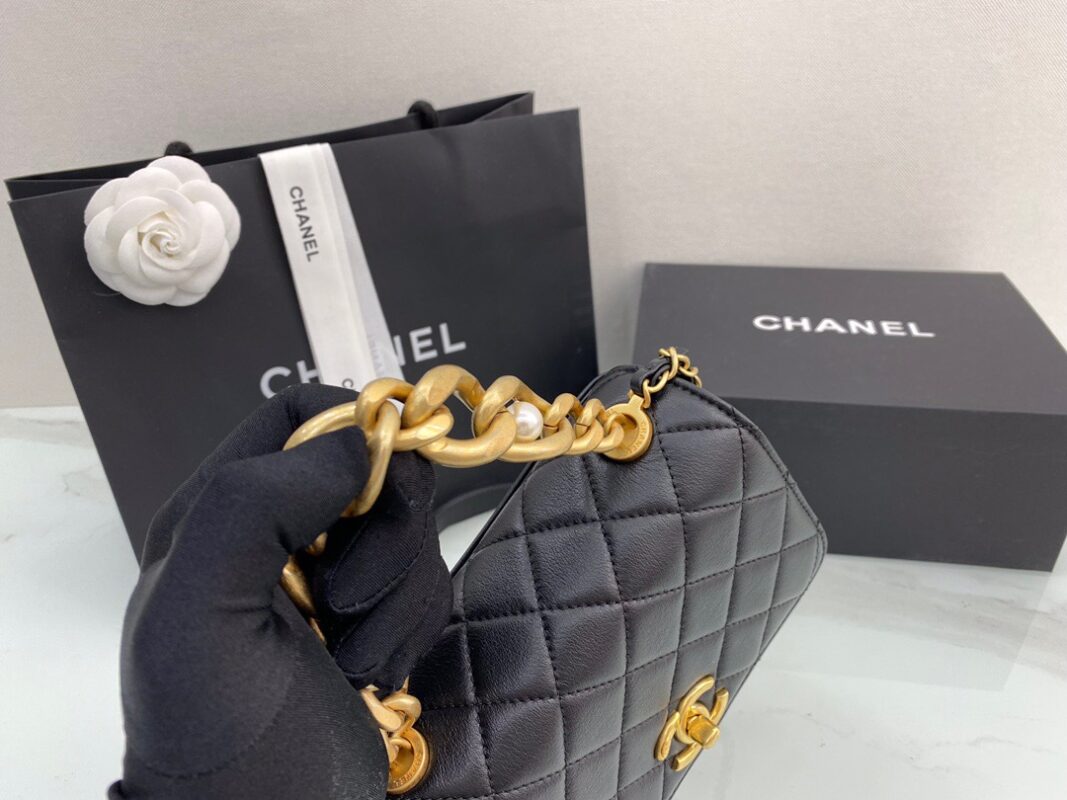 ๐พ๐๐๐ฃ๐๐ก ๐ฎ๐ญVintage Thick Chain Inlaid Pearl Wrist Flap Organ Bag. Portable shoulder crossbody 13*18*8