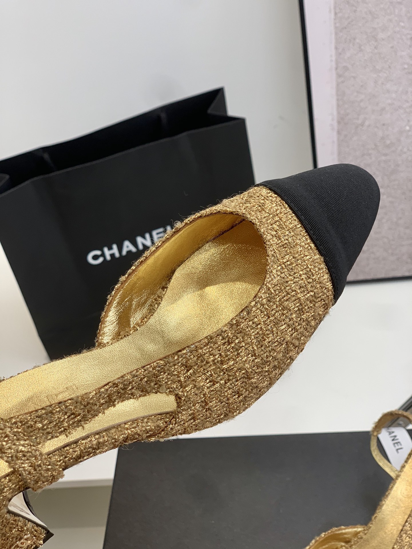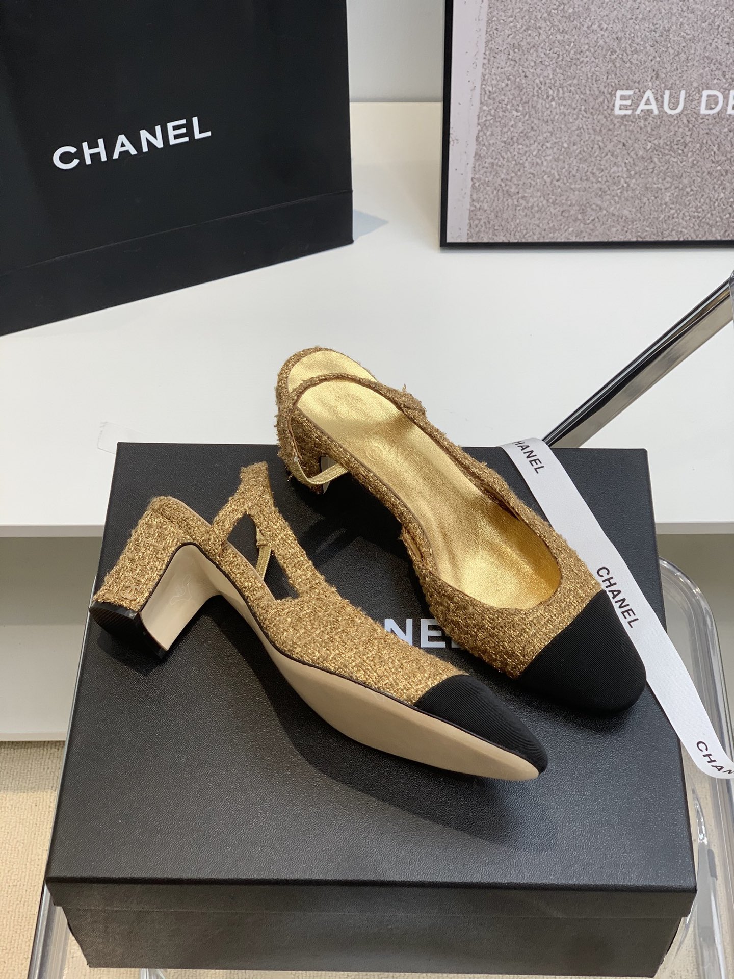 Chanel classic slingback shoes Imported mixed-breed sheepskin surface material. Imported Italian cowhide soles.High heel: 6.5cm Size: 35-40 (34.41.42.43.44.45 customized)