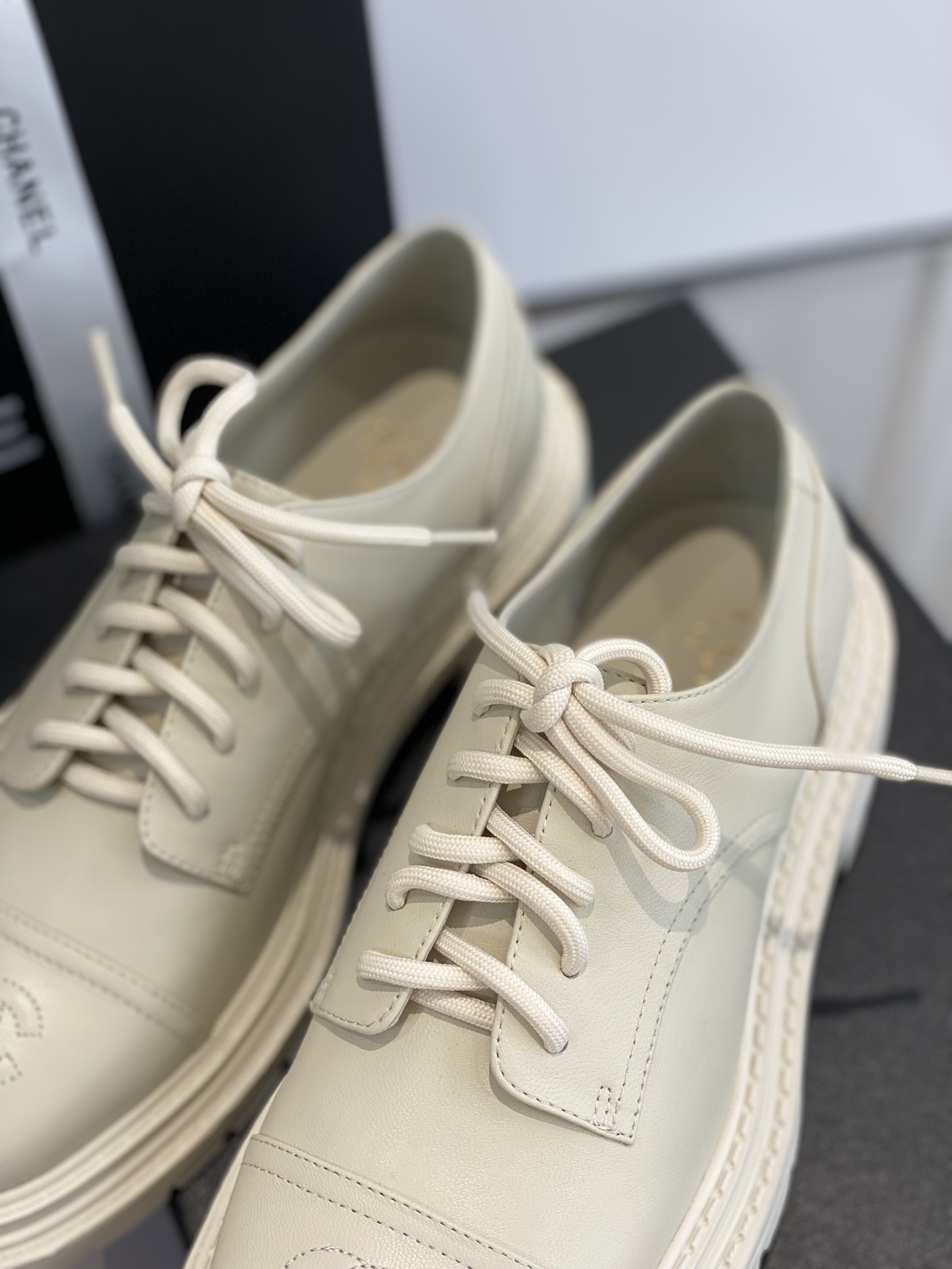Chanel Autumn and Winter Classic Chunky Shoes Small square head splicing design, radian control is in place. The upper is customized original lambskin, very soft and comfortable, not tight. Imported sheepskin inside, super delicate foot feeling, 100% comfort. Italian leather outsole, non-slip and wear-resistant, high safety performance. With thick heel design, the proportion of visual elongate. Size: 35-39 (40/41 customized non-refundable)