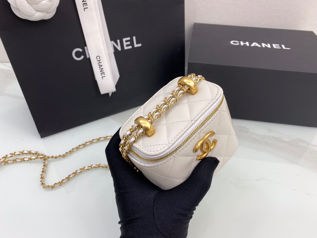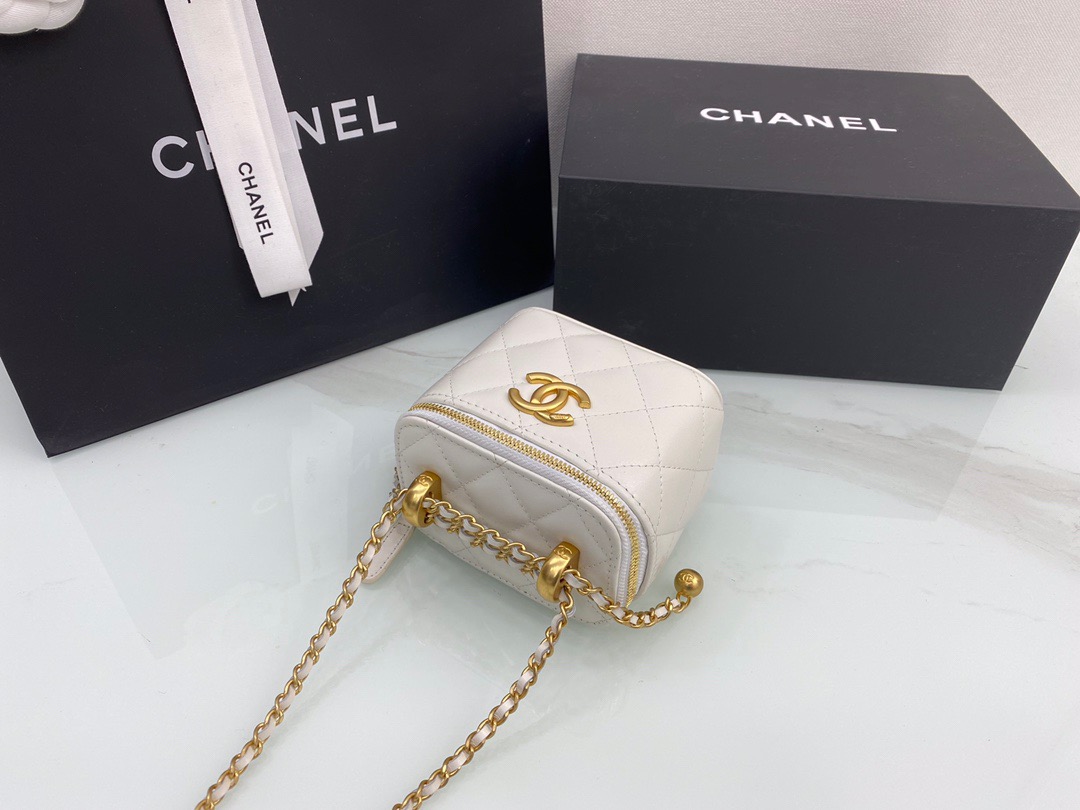 Chanel Handle Box Cosmetic Bag in White
