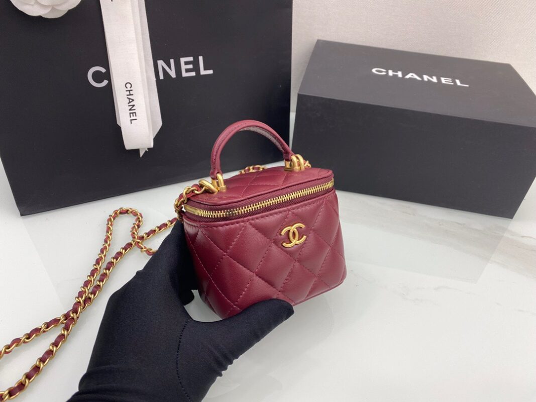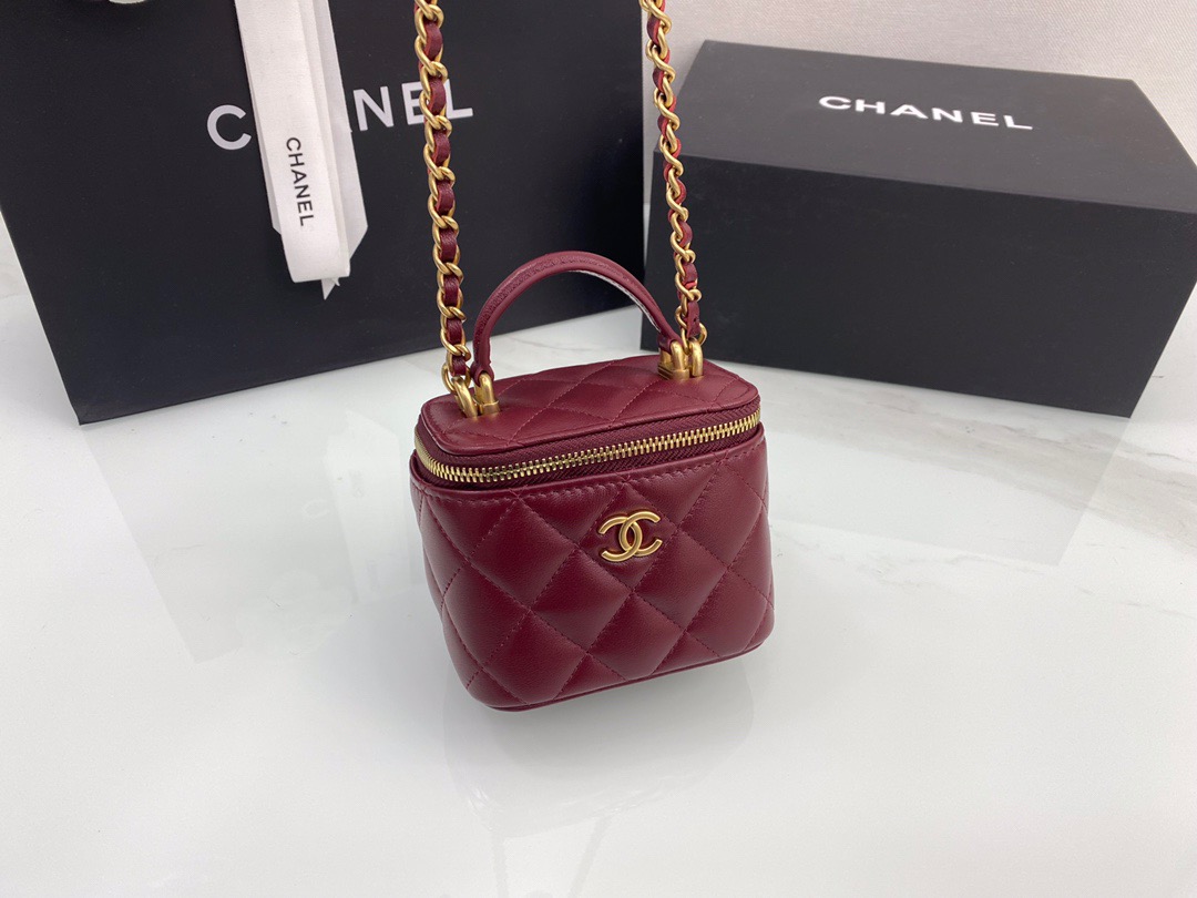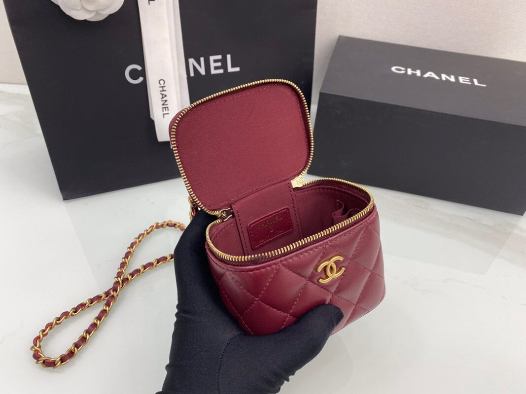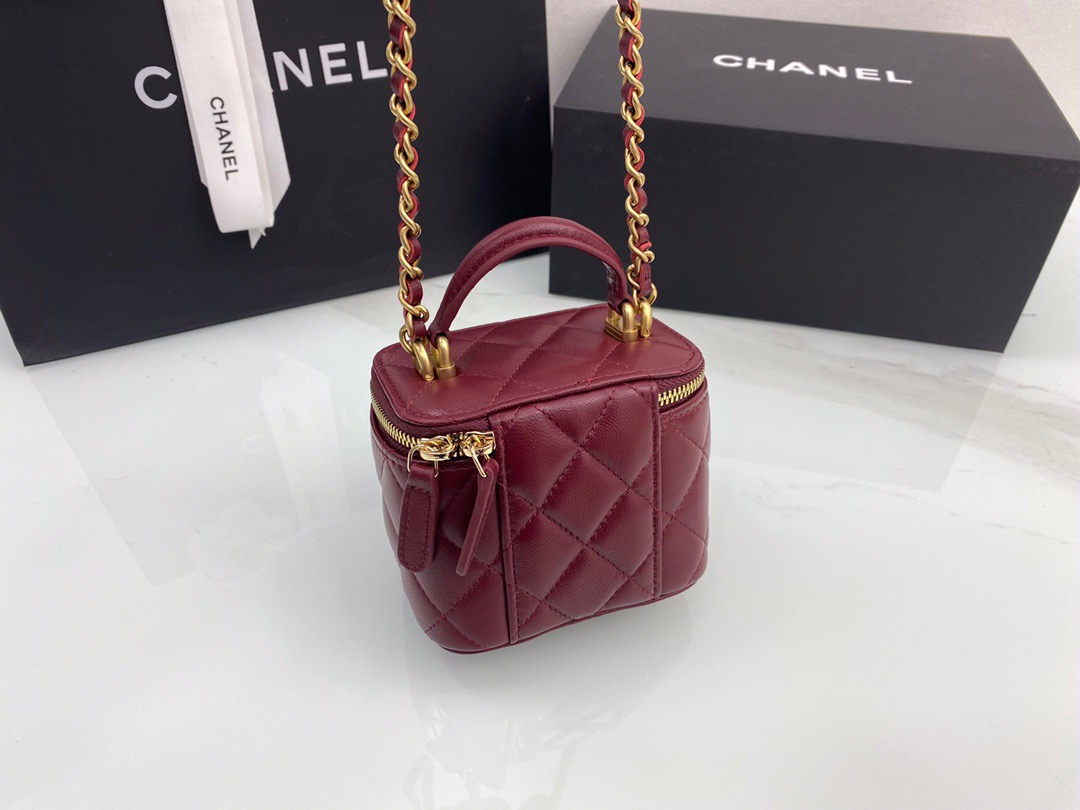 Chanel Handle Box Cosmetic Bag in Wine Red