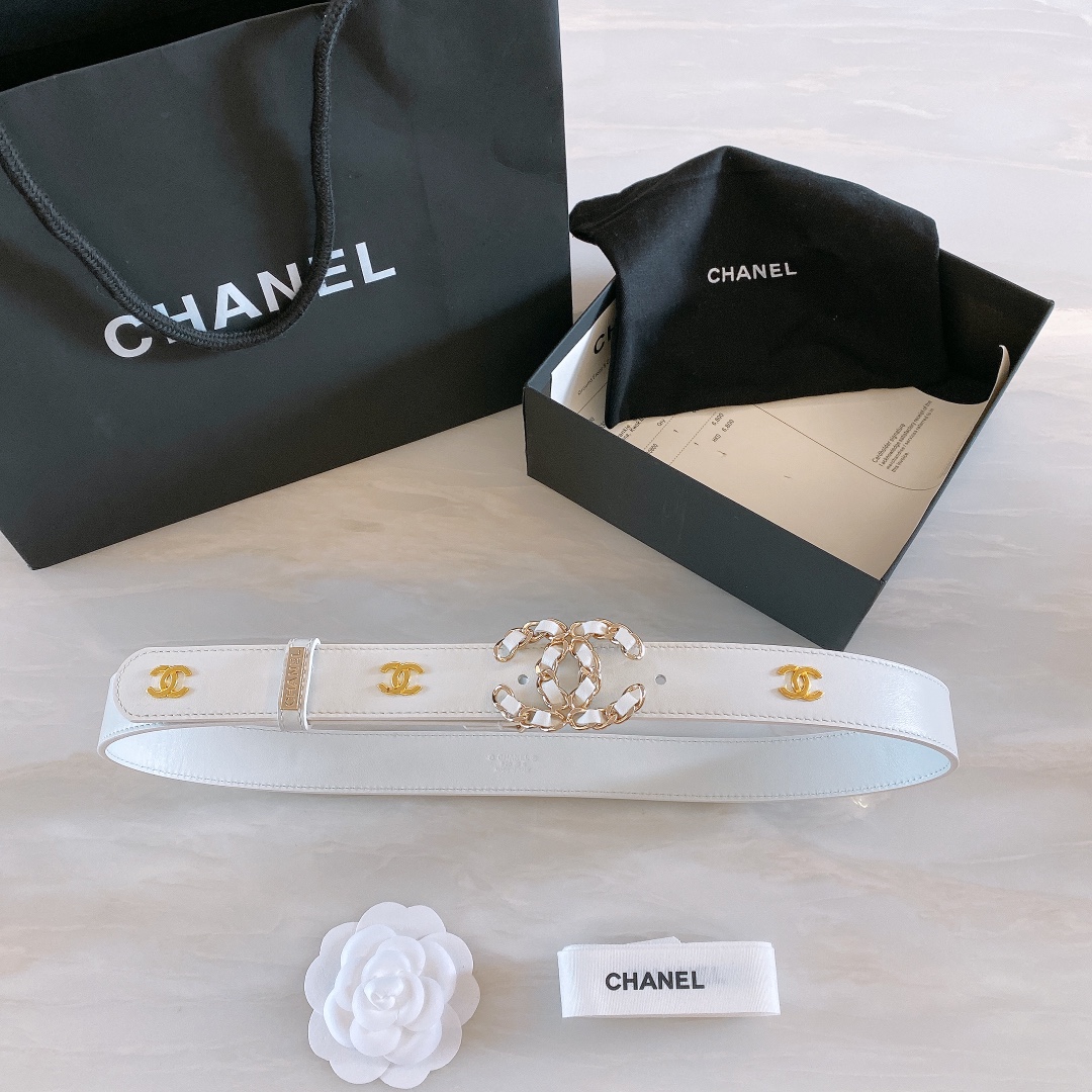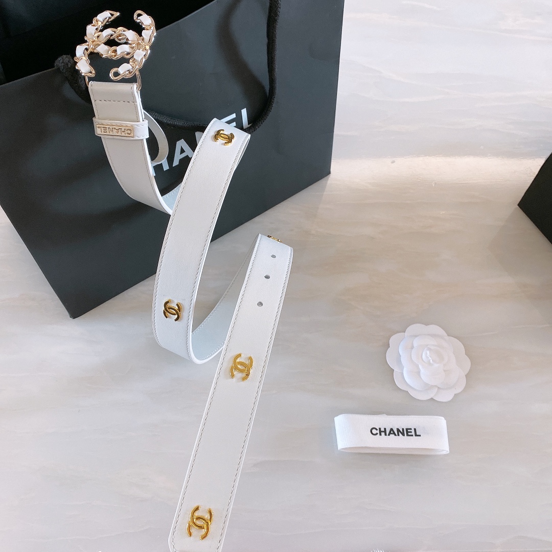 Chanel 2022 Early Spring New calfskin belt with CC logo light gold metal chain hardware. Width: 3mm. Exquisite and elegant. 26085659