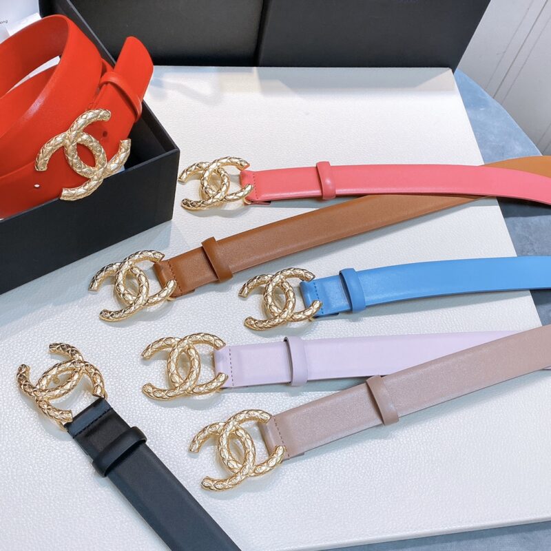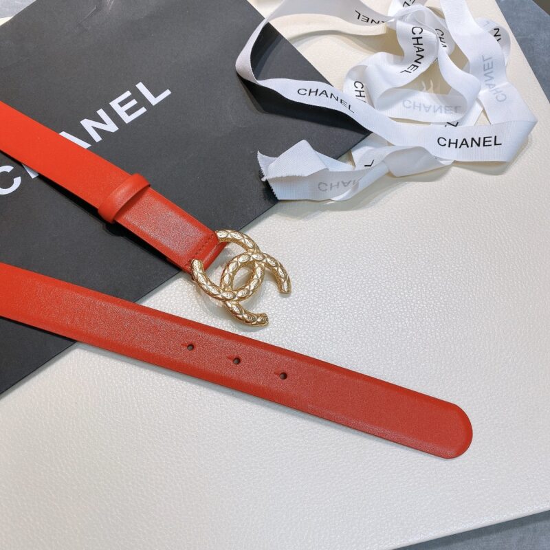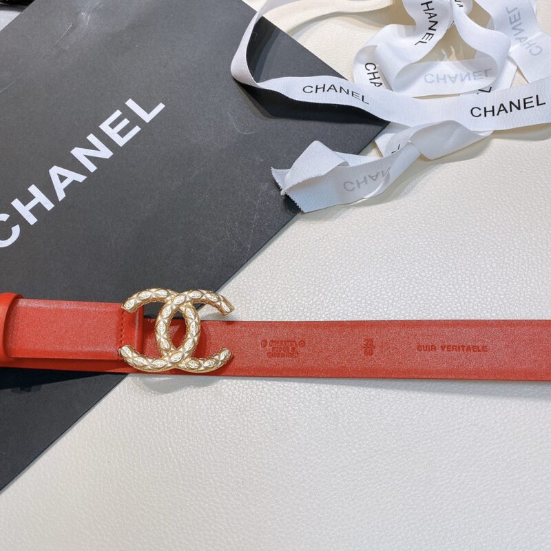Chanel calfskin belt. CC full logo engraved copper buckle. 3mm wide. 24087966