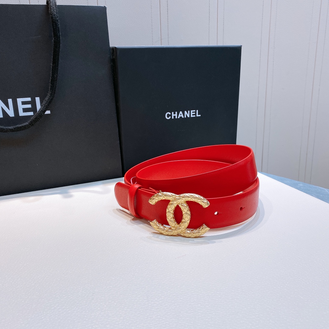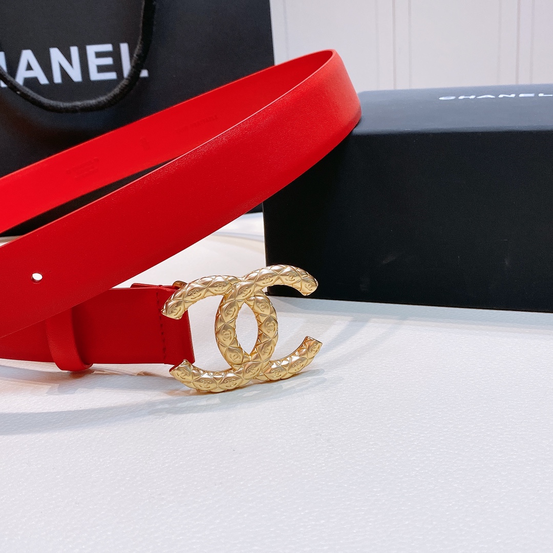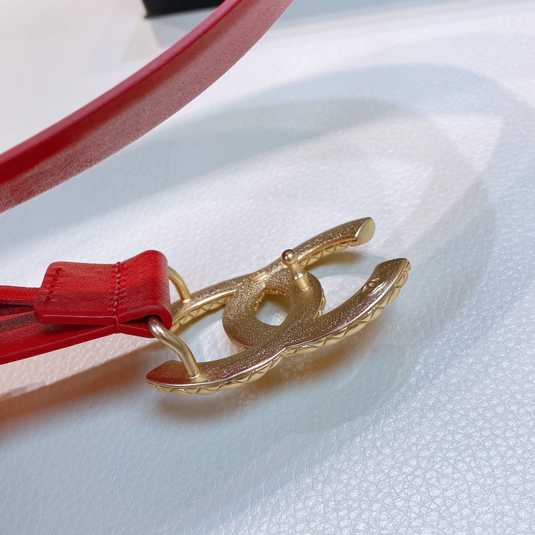 Chanel calfskin belt. CC full logo engraved copper buckle. 3mm wide. 24087966