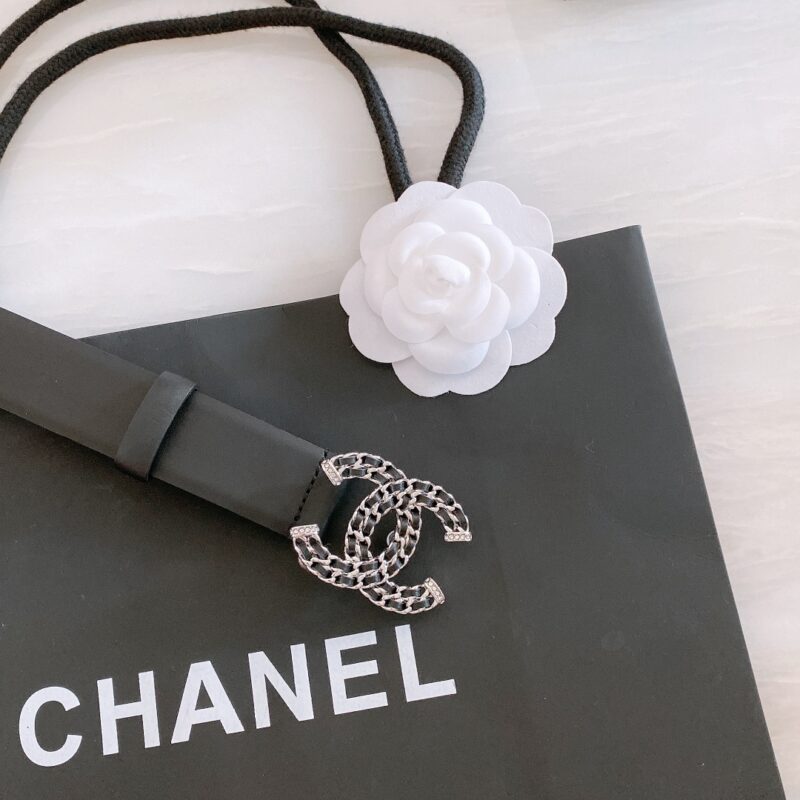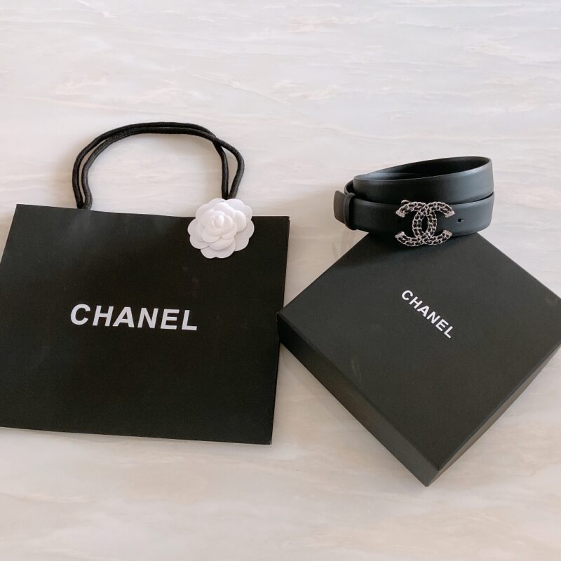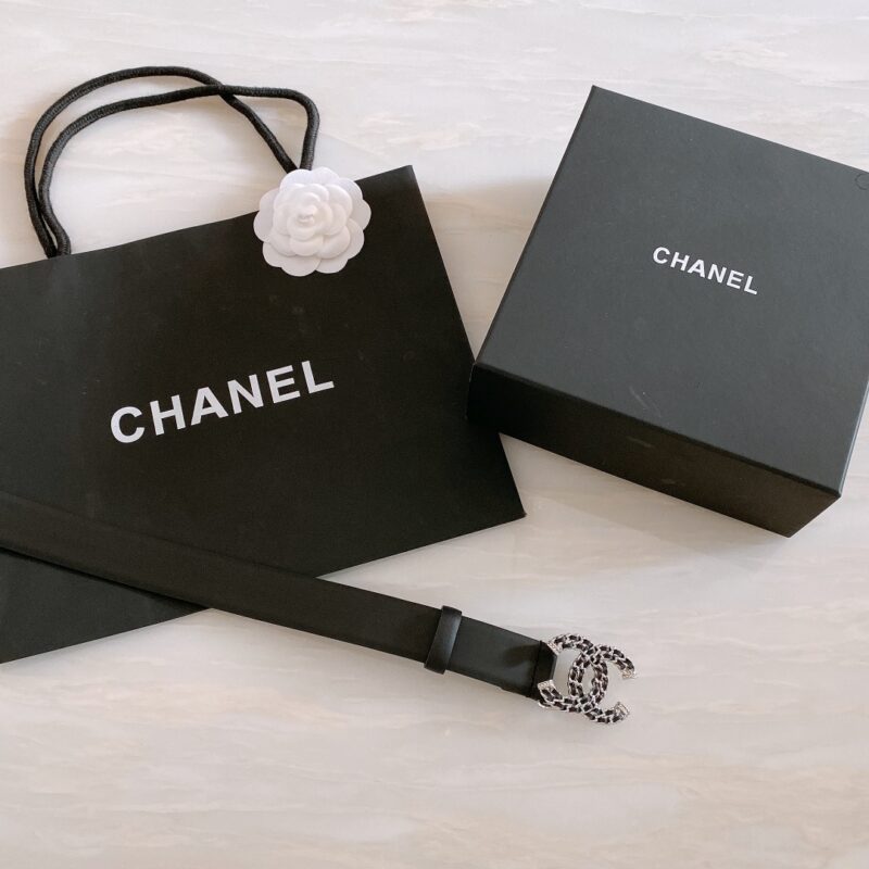 Chanel 2022 spring and summer new CC classic chain link. Rhinestone gold metal calfskin belt. 3mm wide. 24084970