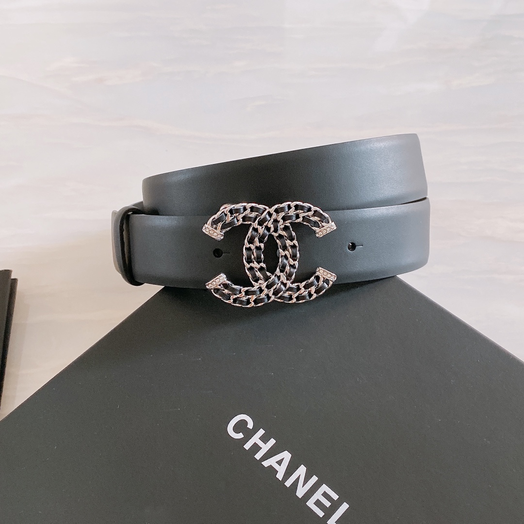 Chanel 2022 spring and summer new CC classic chain link. Rhinestone gold metal calfskin belt. 3mm wide. 24084970