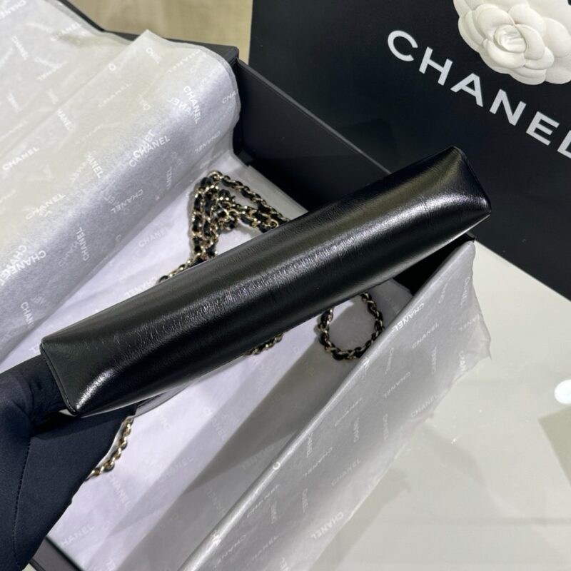 The horizontal mini is cute but has enough capacity to hold a mobile phone. This size uses a suction buckle design, with a small logo placed on the front, and the light gold hardware and waxed leather are even more popular!
