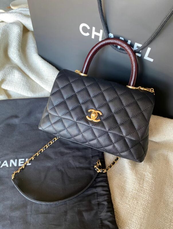 / Chanel Mini Coco Handle Black with Lizard Red Handle