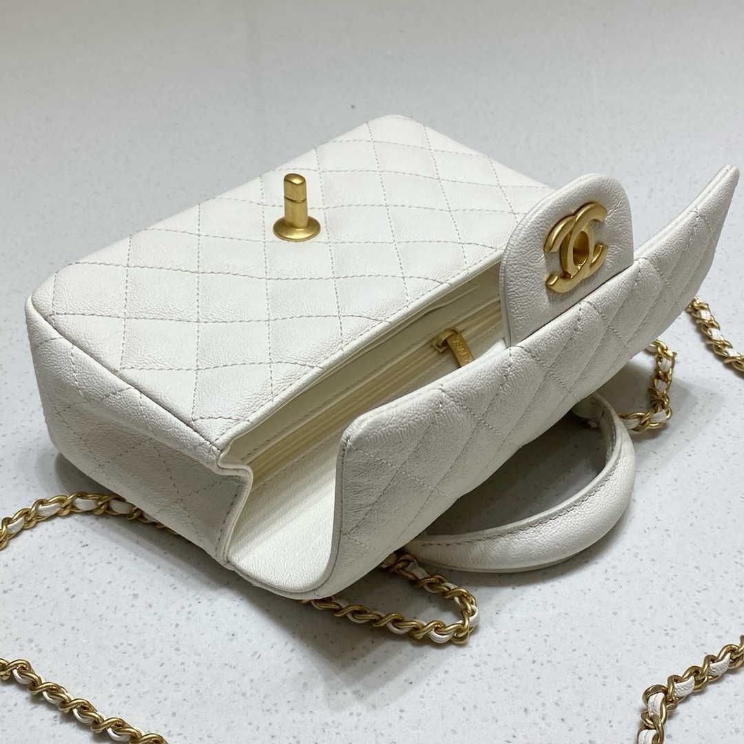 Chanel Mini Handle Caviar Leather White