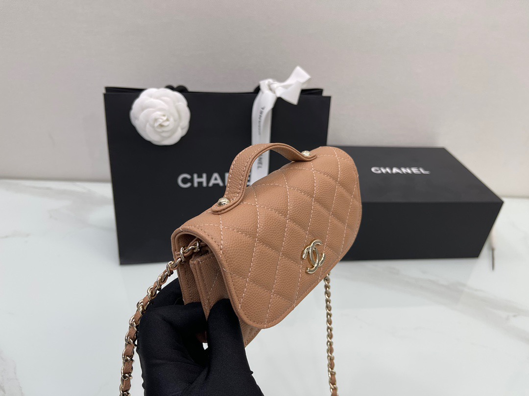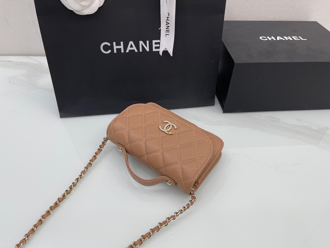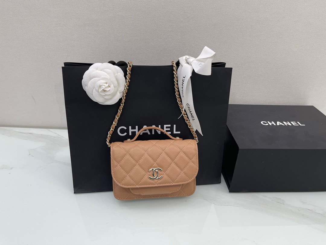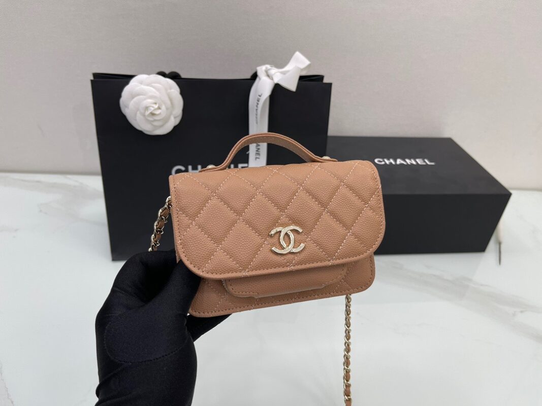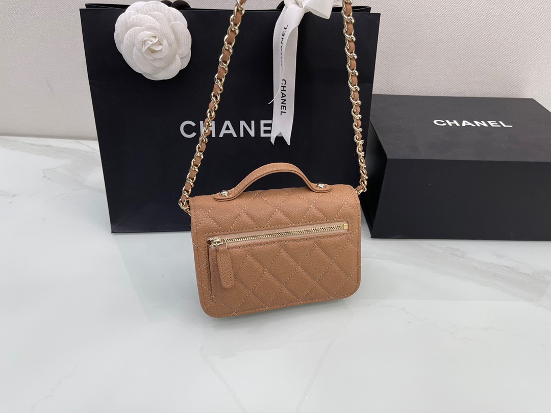 Chanel Mini Messenger 15 in Brown Caviar Leather