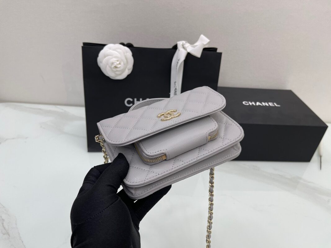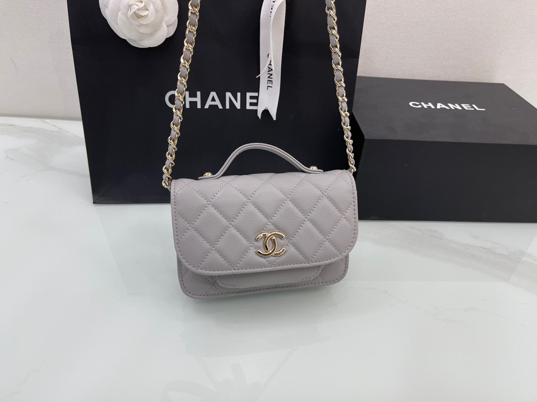 Chanel Mini Messenger 15 in Grey Caviar Leather