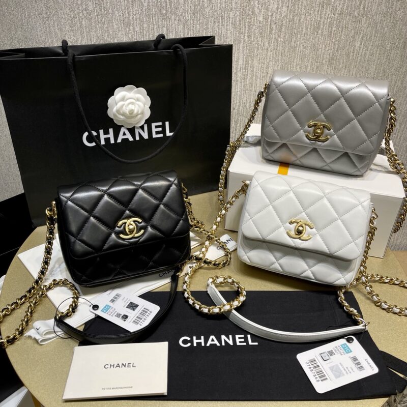 Chanel 2021 autumn and winter counters new Mini Square Fatty Classic Rhombic Flap Bag The chain adopts exquisite button design, after the little golden ball, there is a hot style. The shoulder strap can be adjusted in length and can be adjusted into portable crossbody shoulder. Three carrying methods. Caviar calfskin. Size: 19x13x6cm