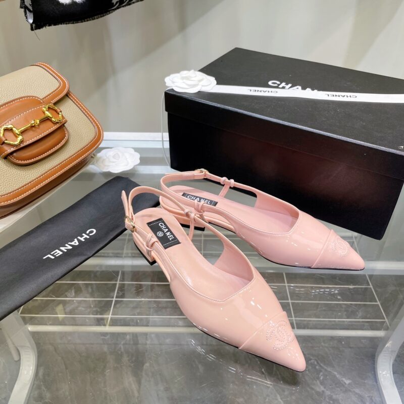 Chanel 𝟐𝟎𝟐𝟐/𝐒𝐒 𝐧𝐞𝐰 fashion pointed toe slingback shoes ……………………………………………… Material: ❶Material: Original cowhide/patent leather/metal cowhide. ❷Inner: imported sheepskin. ❸Sole: Italian imported leather outsole. ❹Packing: Full set of original box. ❺Size: 34/40 (34 40 customized non-refundable)