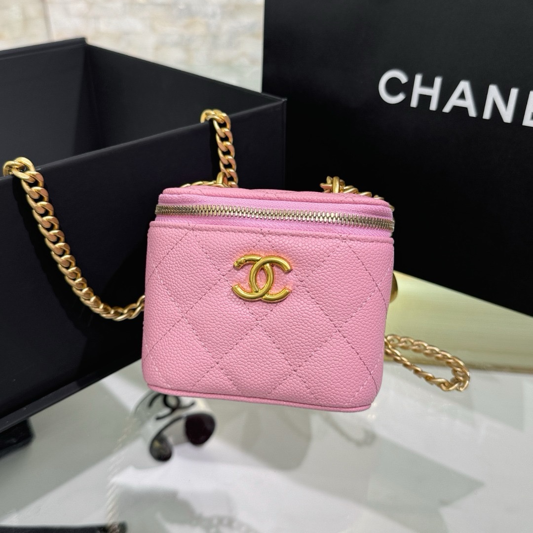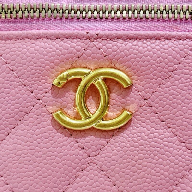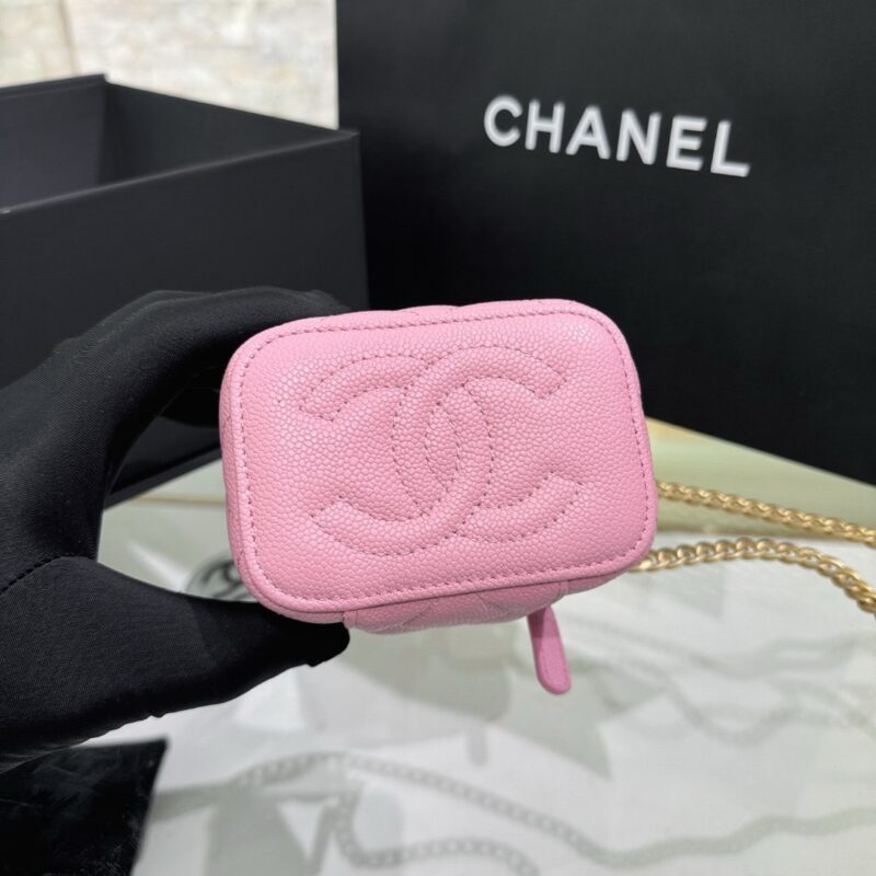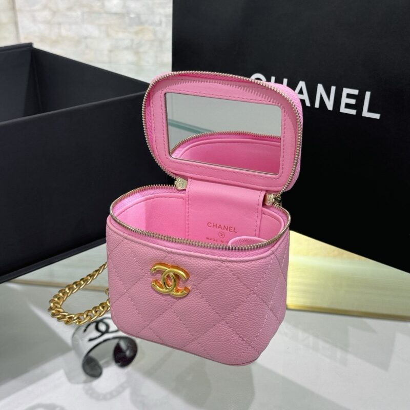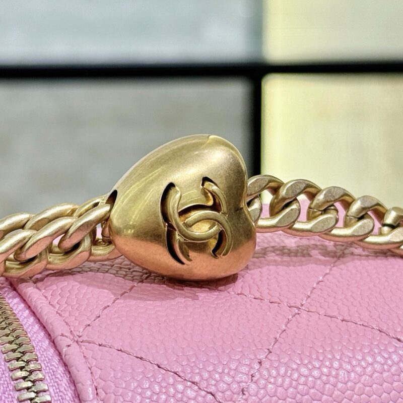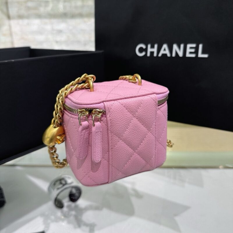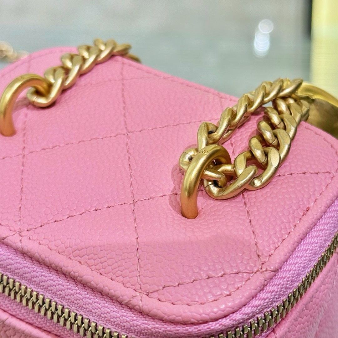 Chanel Pink Quilted Caviar Vanity Case Heart