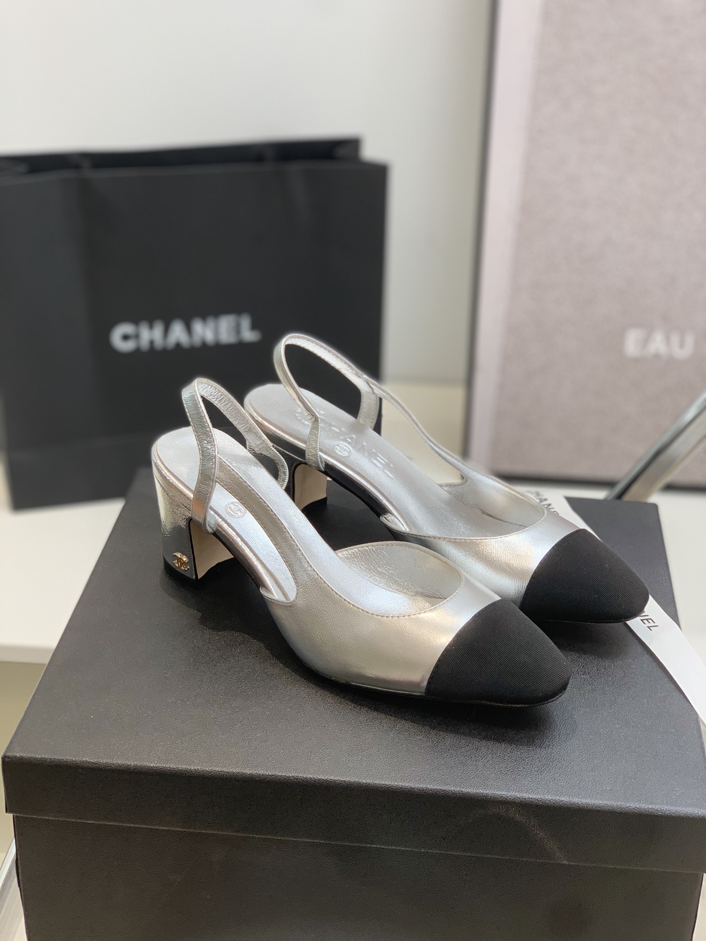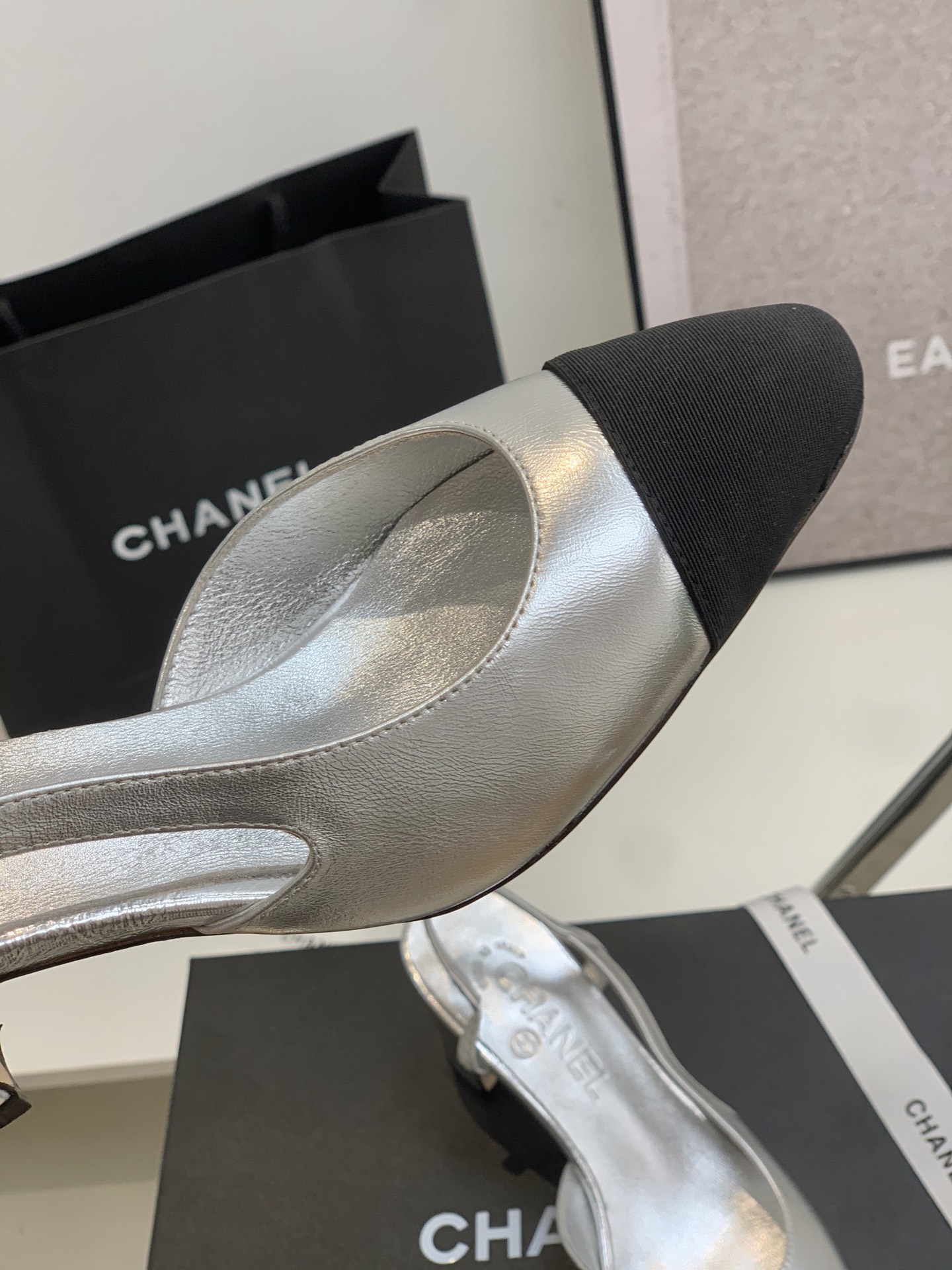 Chanel classic slingback shoes Imported mixed-breed sheepskin surface material. Imported Italian cowhide soles.High heel: 6.5cm Size: 35-40 (34.41.42.43.44.45 customized)