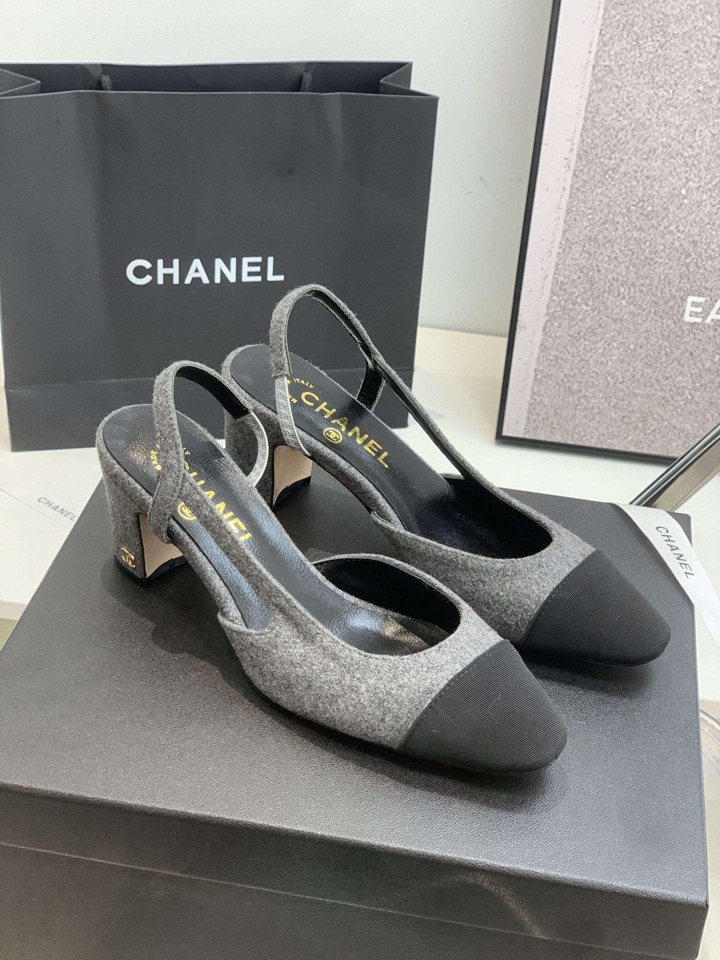 Chanel classic slingback shoes Imported mixed-breed sheepskin surface material. Imported Italian cowhide soles.High heel: 6.5cm Size: 35-40 (34.41.42.43.44.45 customized)