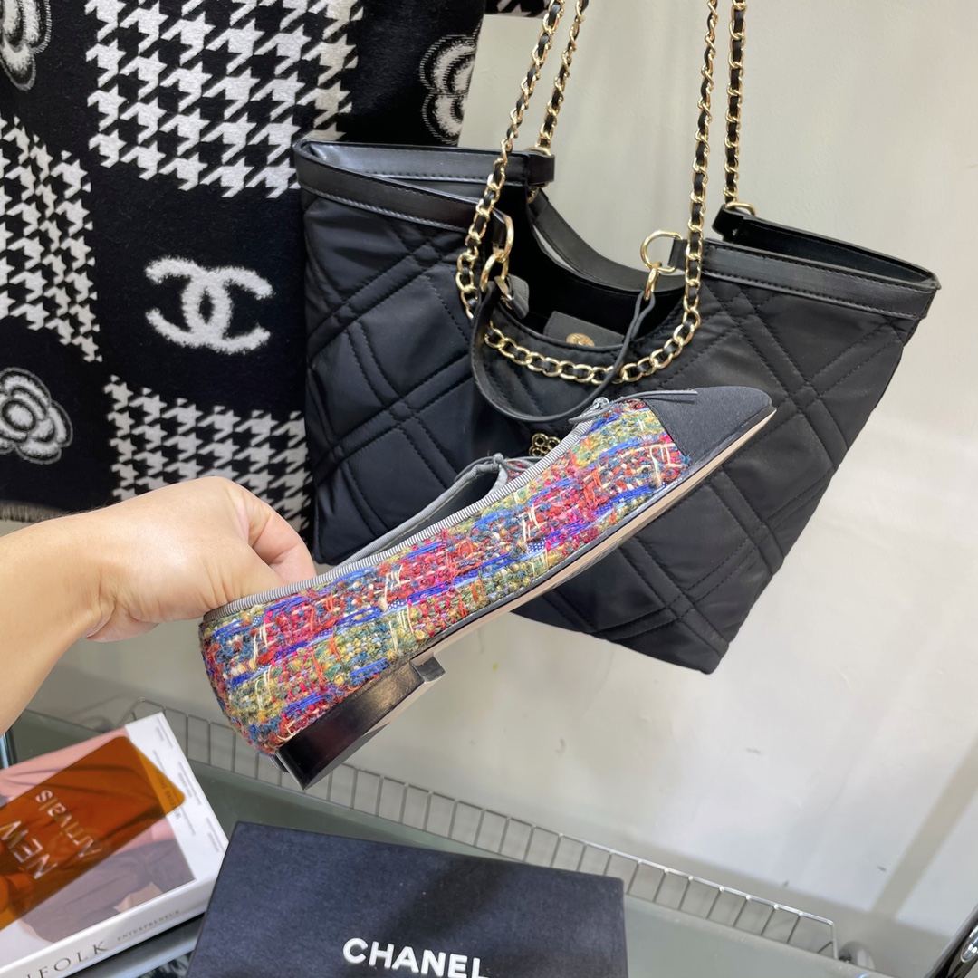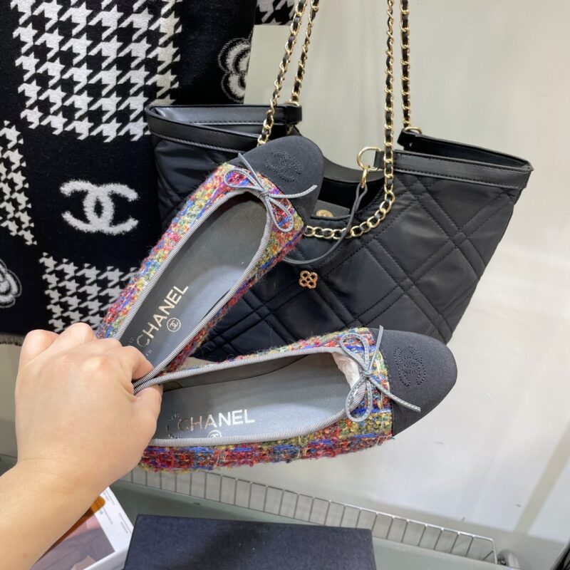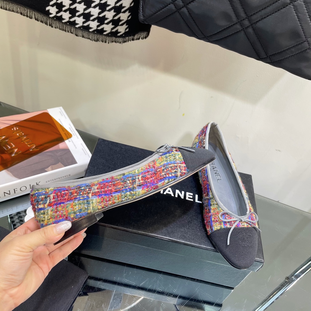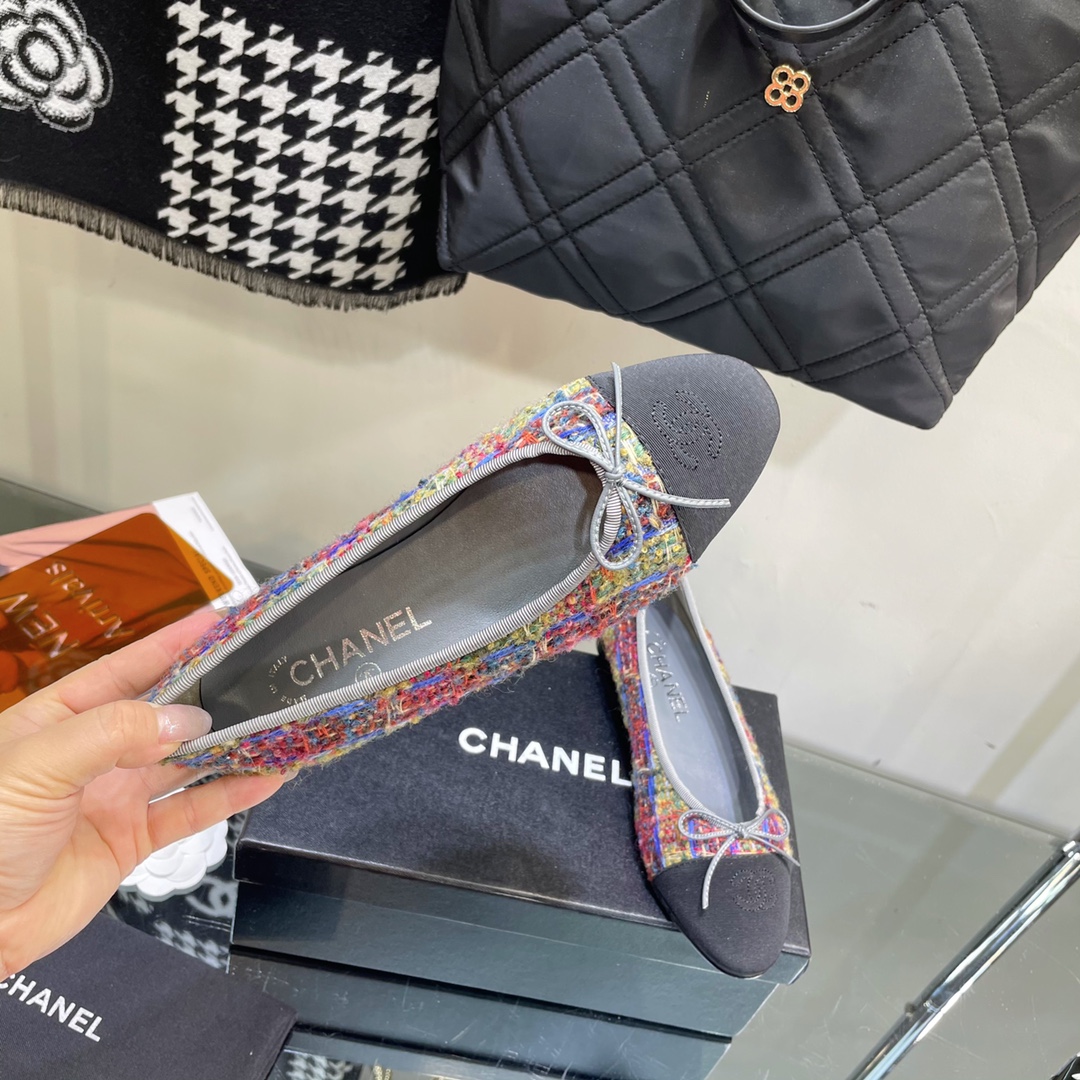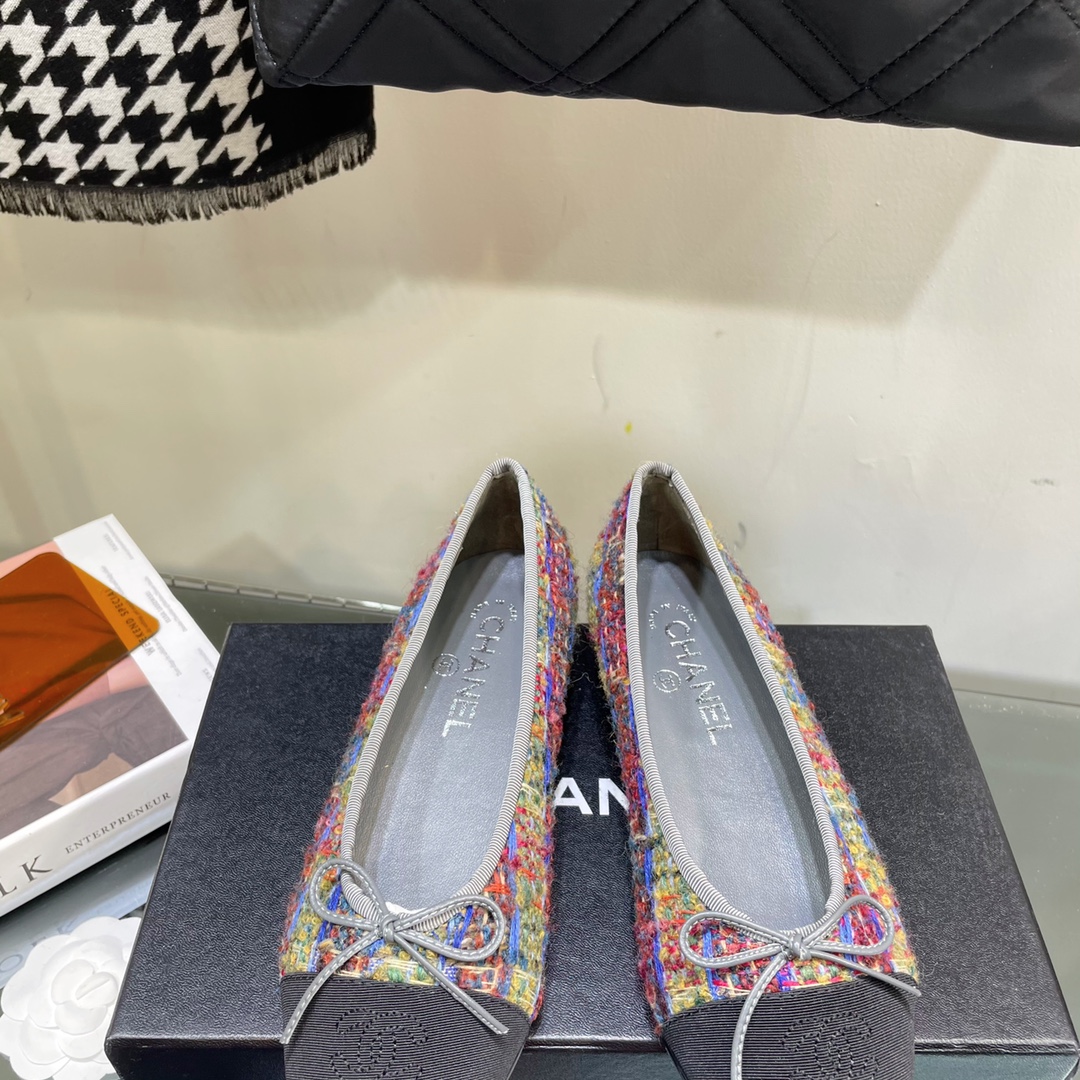 Chanel 𝟐𝟎𝟐𝟐/𝐒𝐒 𝐧𝐞𝐰 tweed ballet flat Colors inspired by Scotland ……………………………………………… Material: ❶Material: original tweed ❷Inner: imported sheepskin ❸Sole: Italian imported leather outsole ❹Packing: Full set of original box ❺Number of yards: 34/43 (34, 40, 41, 42, 43 customized non-refundable)