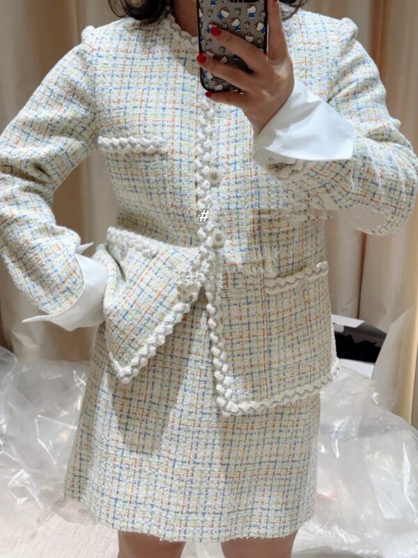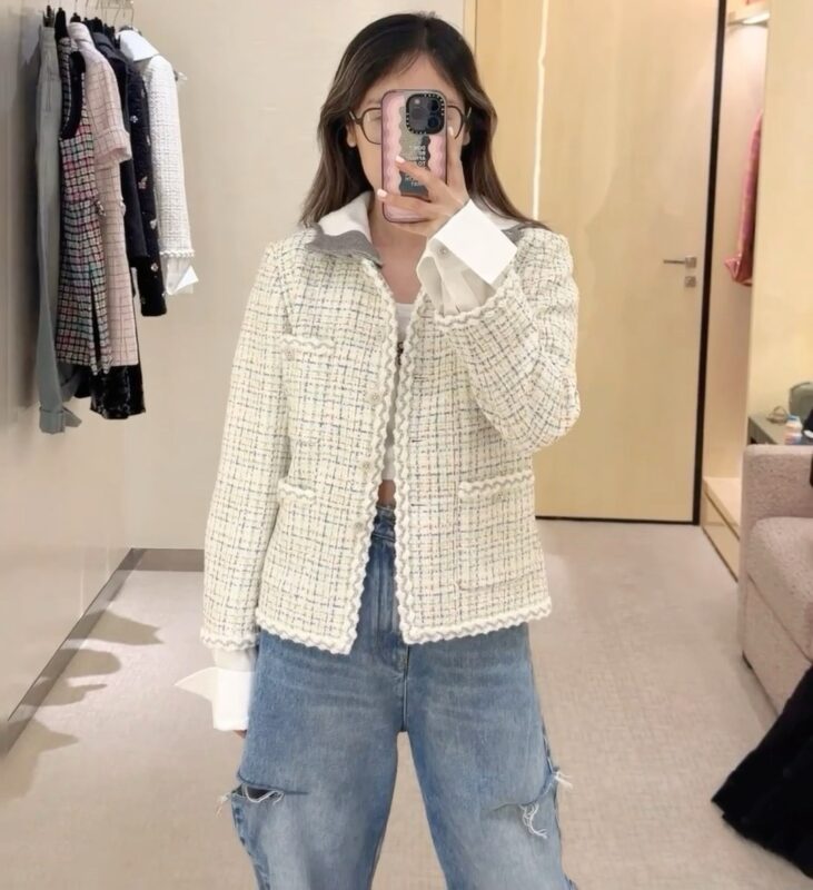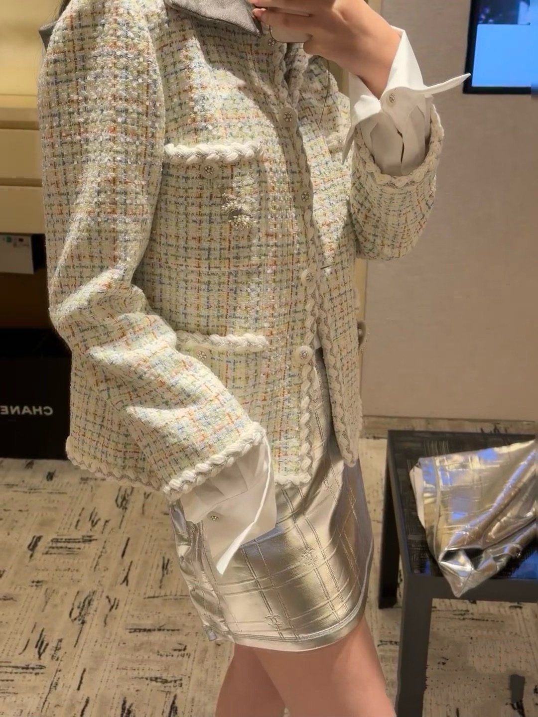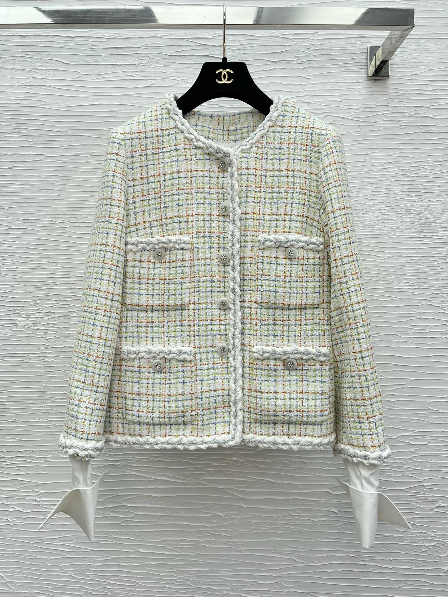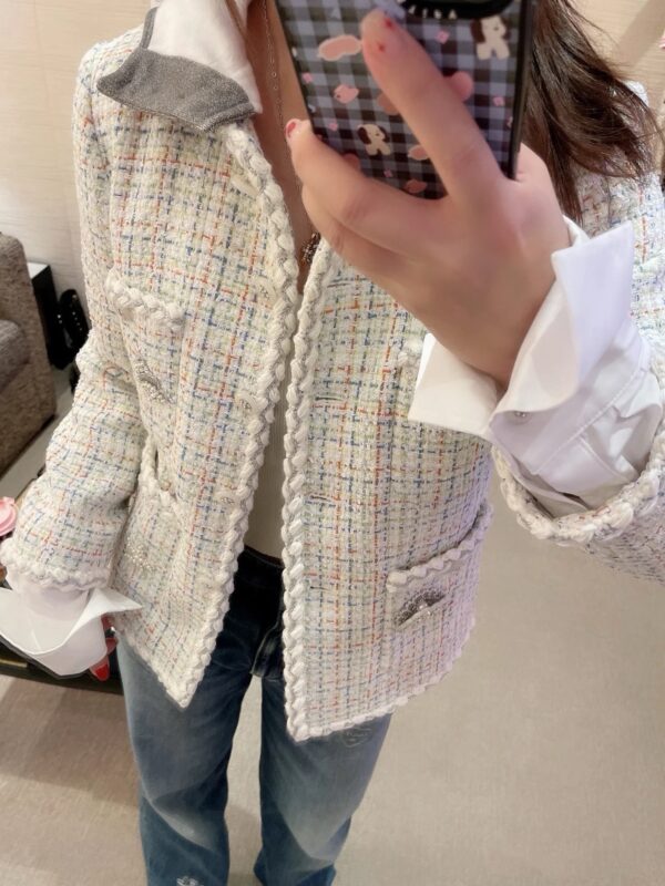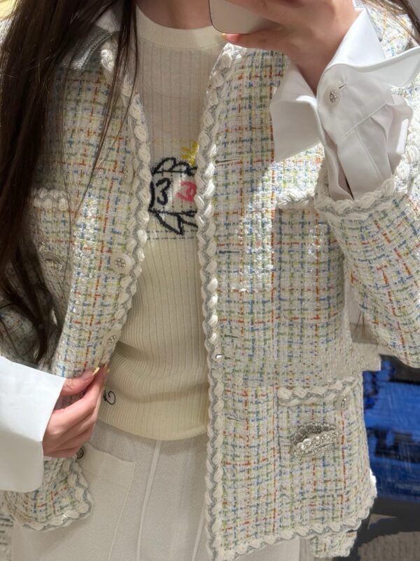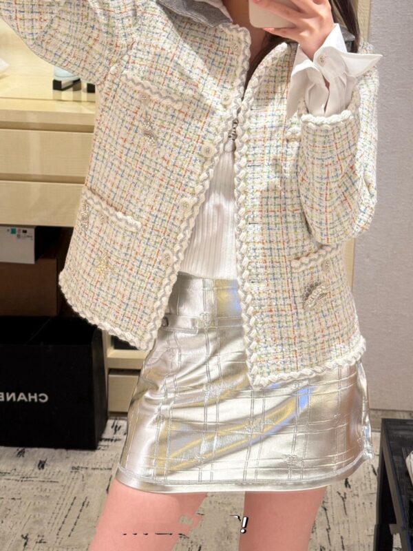 Chanel tweed jacket white cc25c authentic quality replica 2025